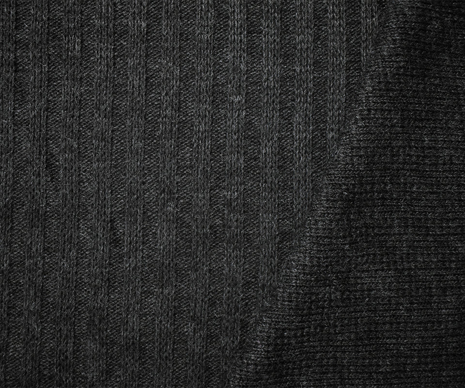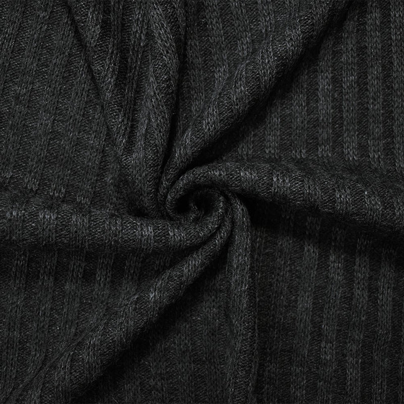 Black-Gray Acrylic Wool Sweater Rib Knit Fabric