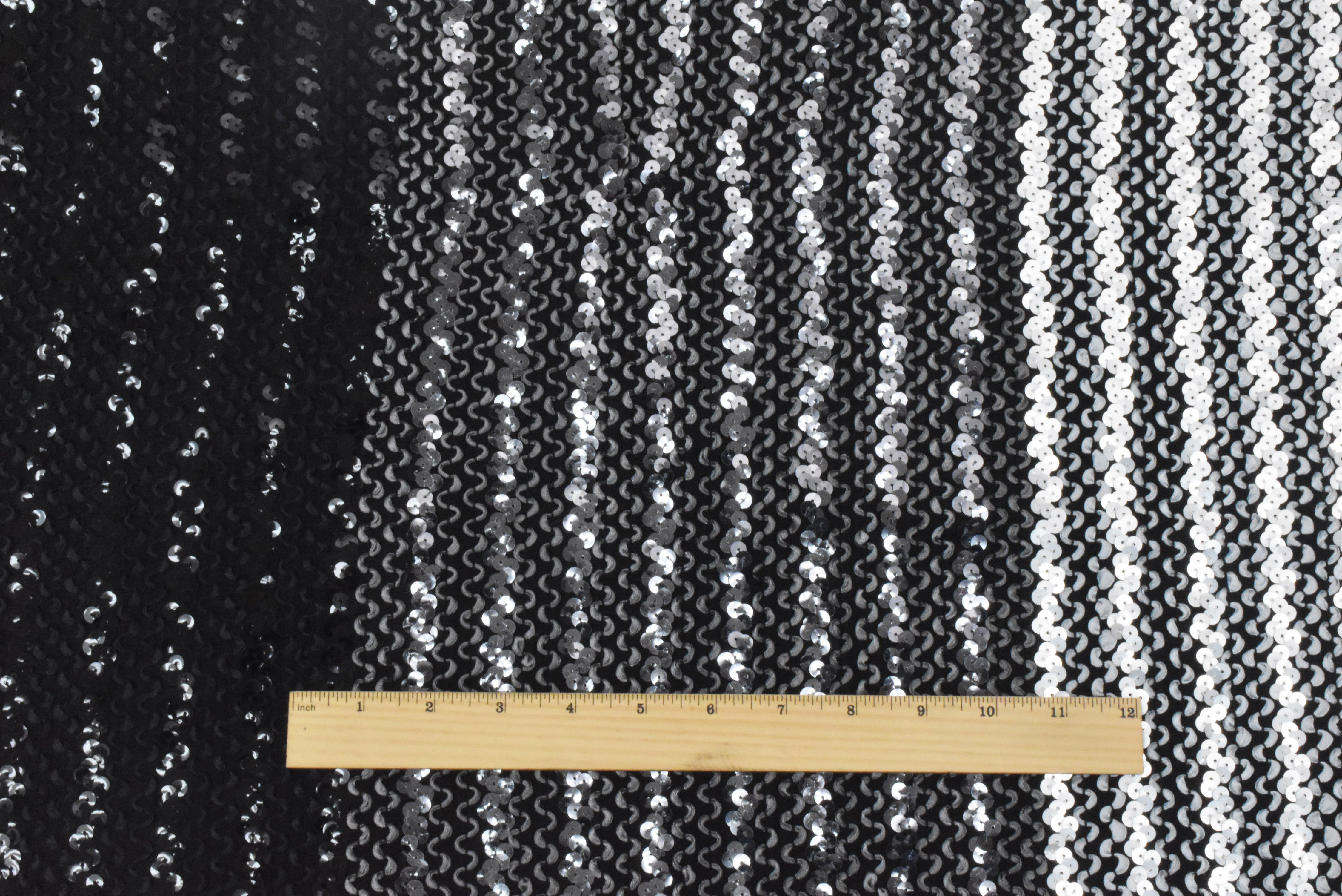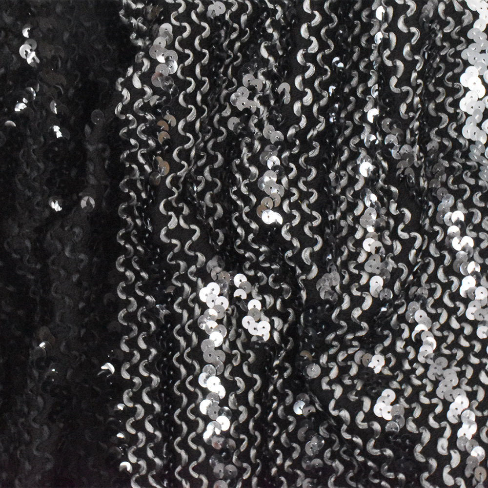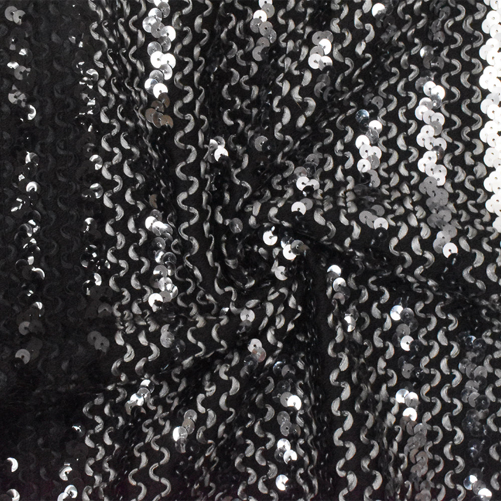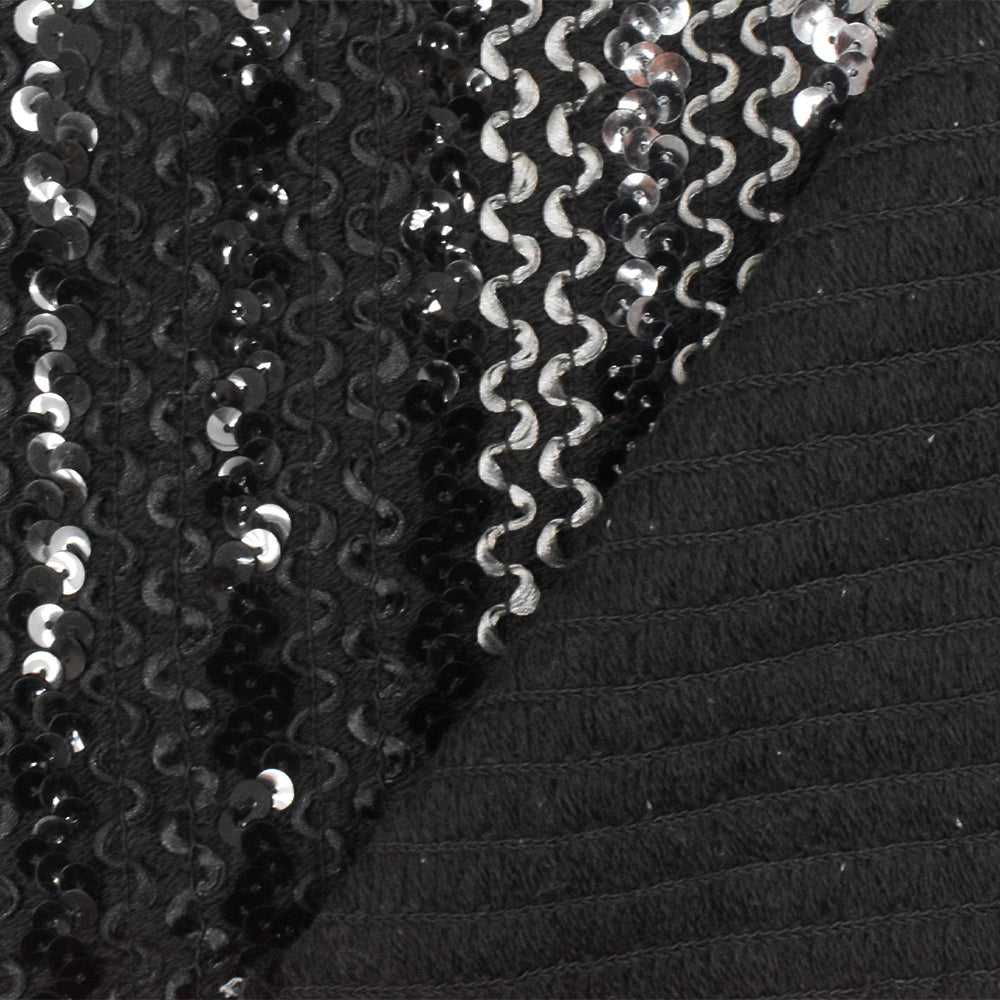 Gray-Black-Multi 3D Wave With Sequins Acrylic Poly Woven Jacketing Fabric