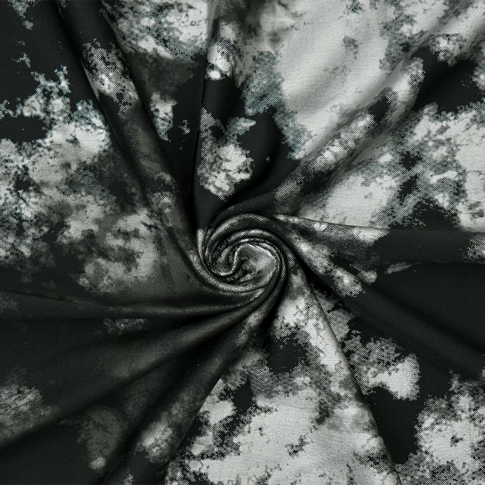Black-Silver Metallic Poly-Spandex Tie Dye Printed Activewear Knit