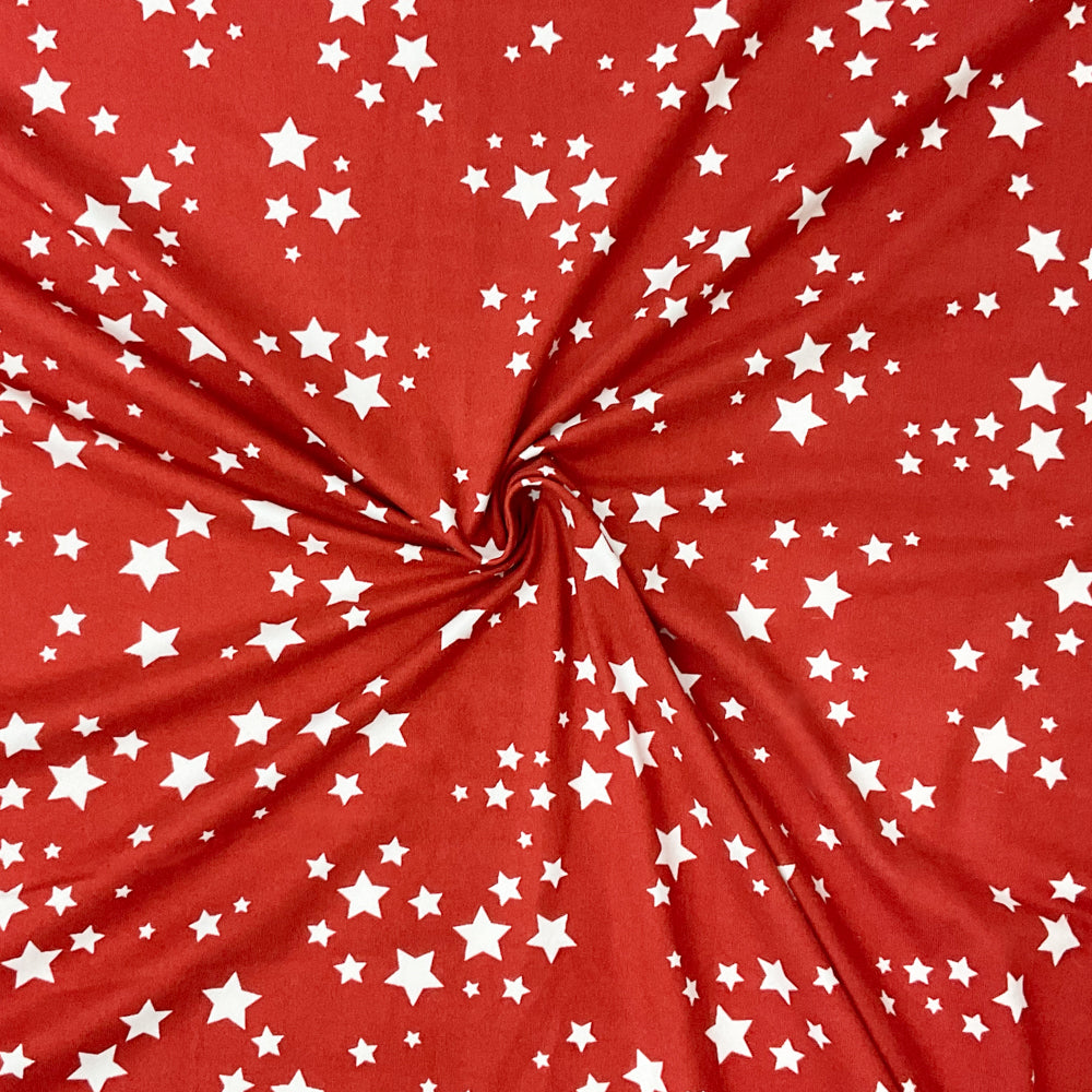 -Red-White Poly Spandex Stretch Star Print Double Brush Jersey Knit Fabric