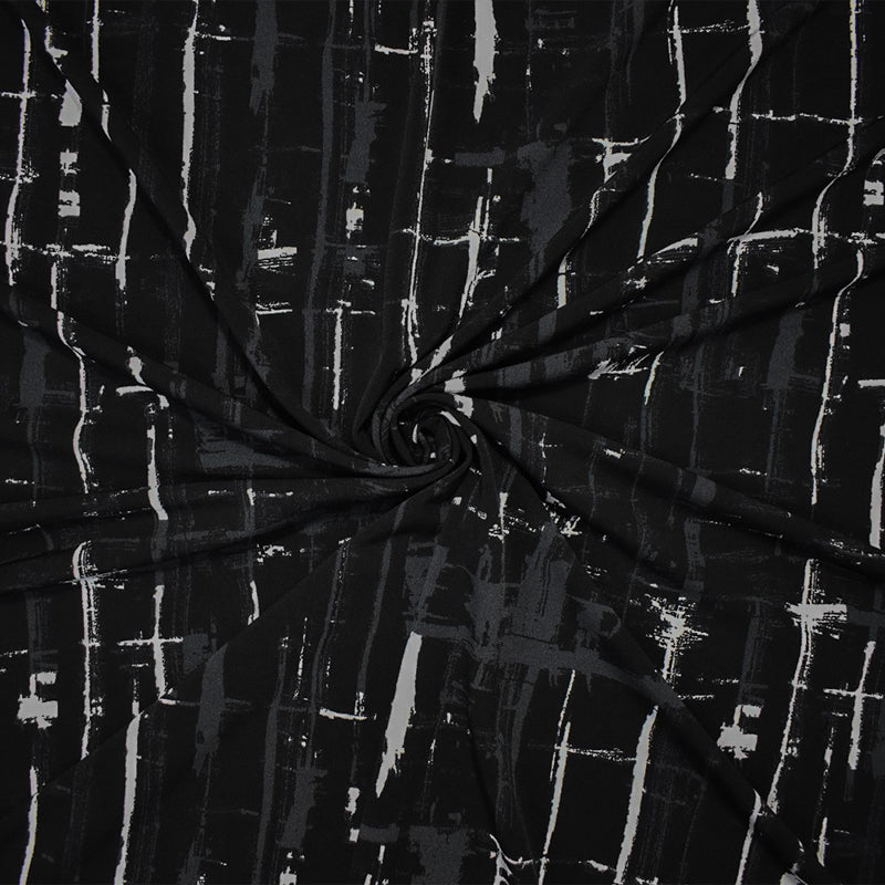 Black-Multi Poly Abstract Printed Stretch ITY Jersey Knit Fabric