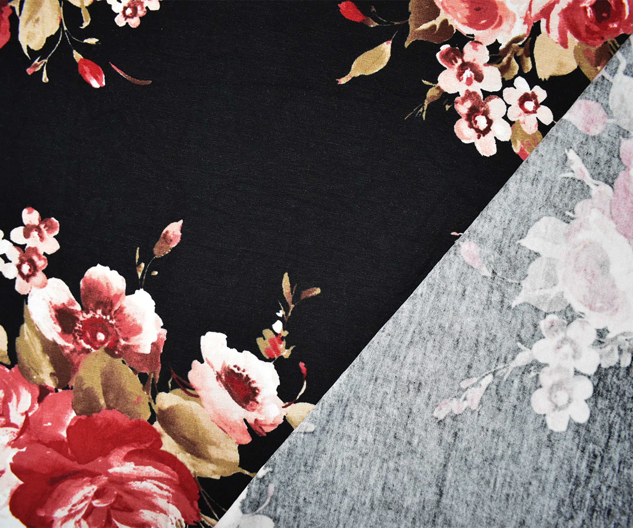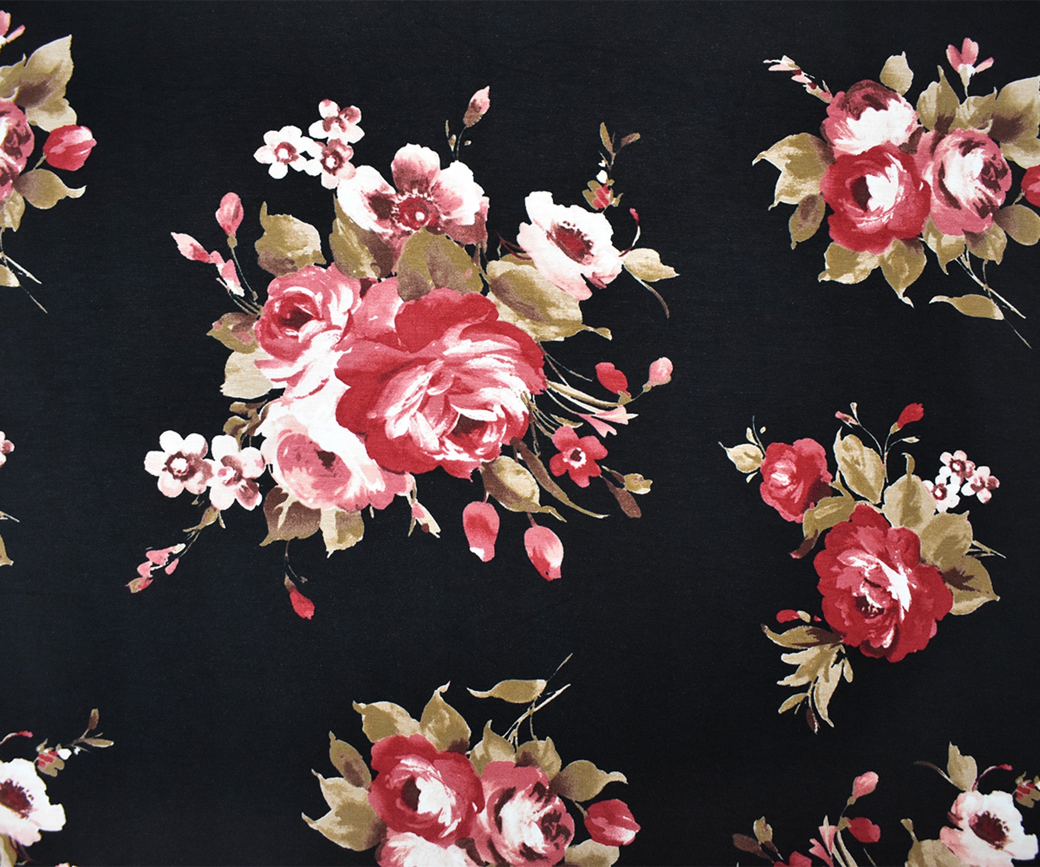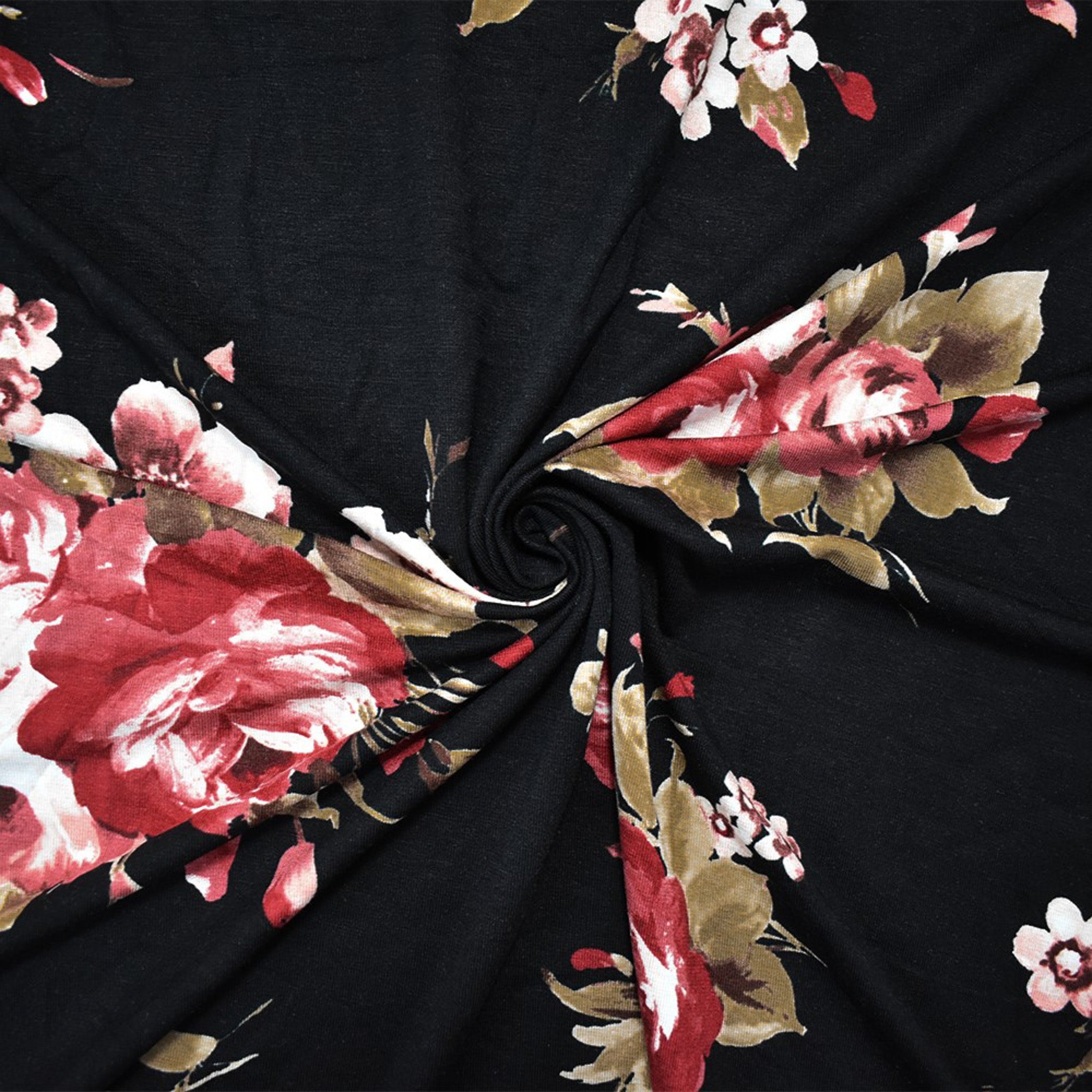 Black-Multi Rayon Stretch Spandex Floral Print Jersey Knit Fabric