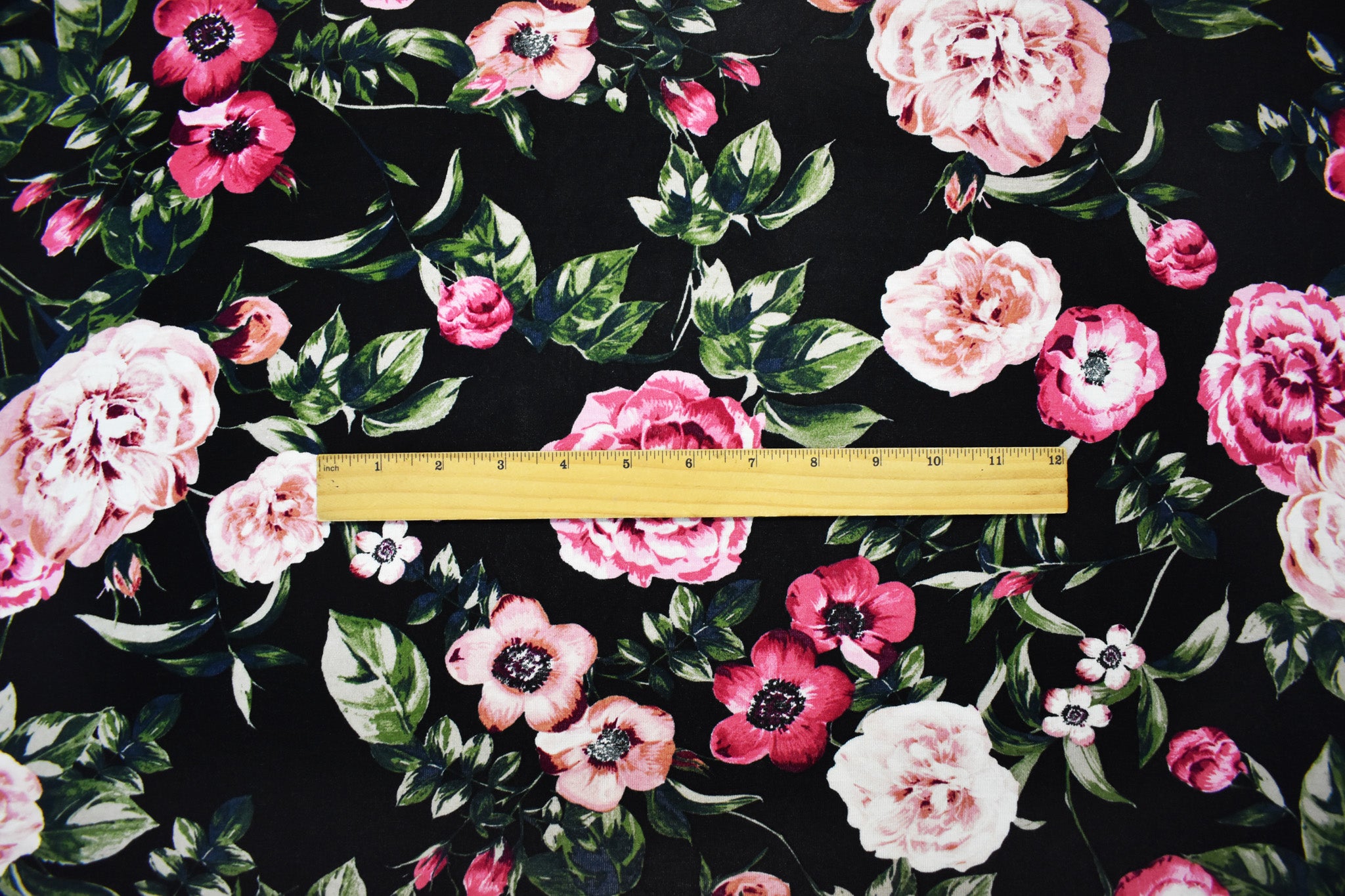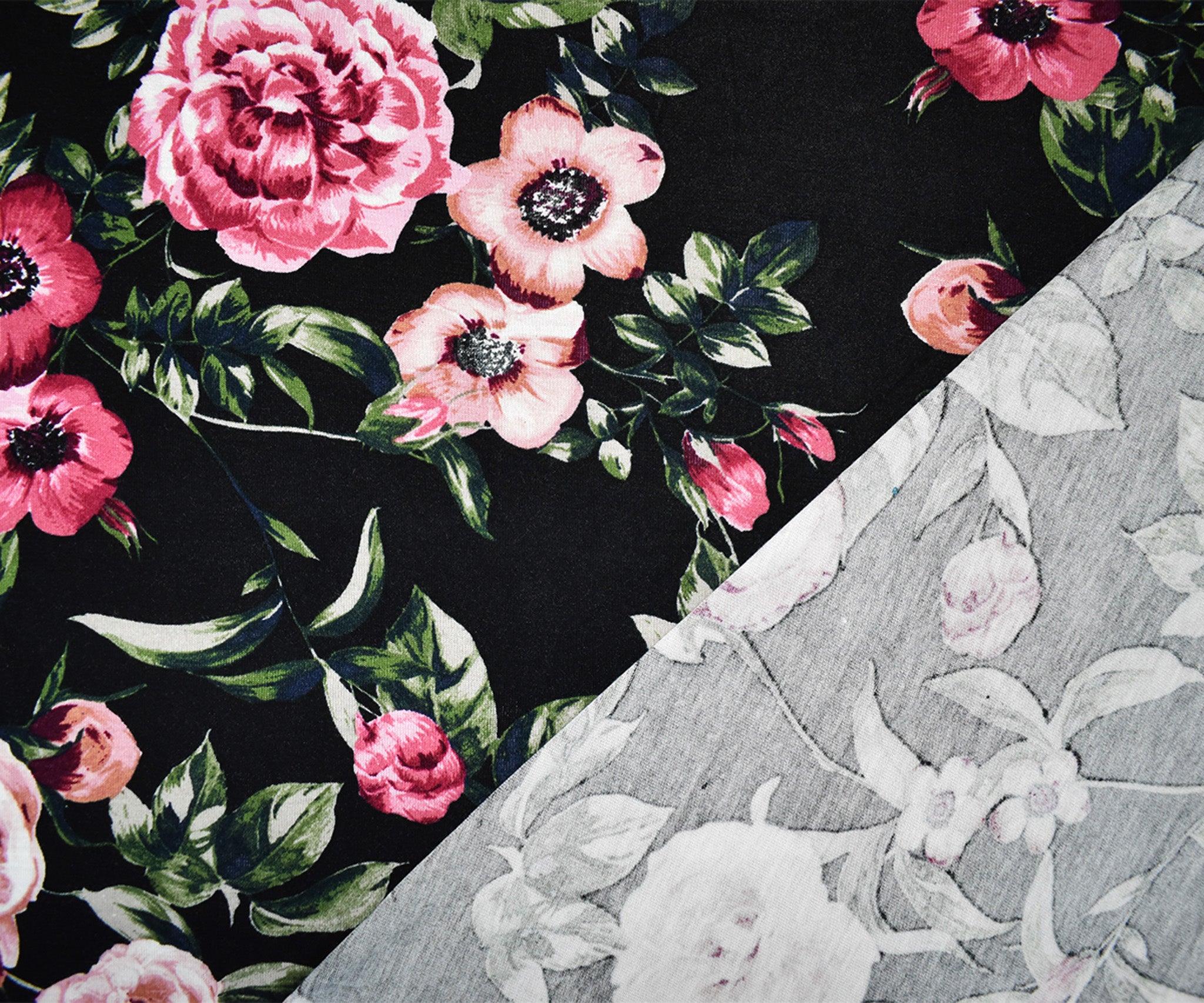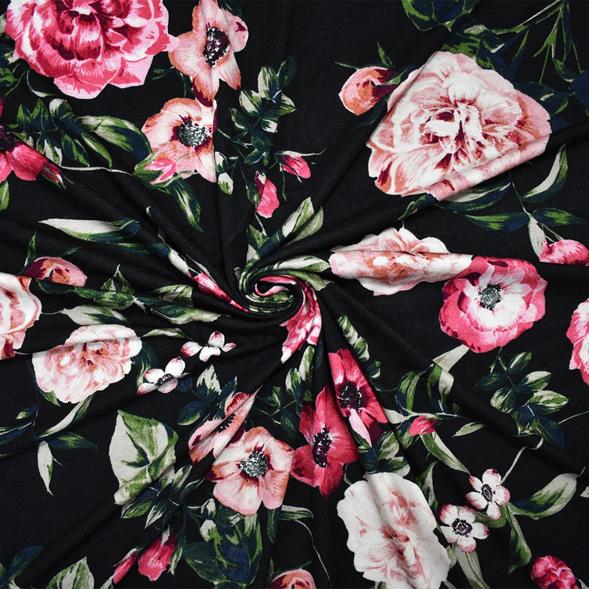 Black-Multi Rayon Stretch Spandex Floral Printed Jersey Knit Fabric
