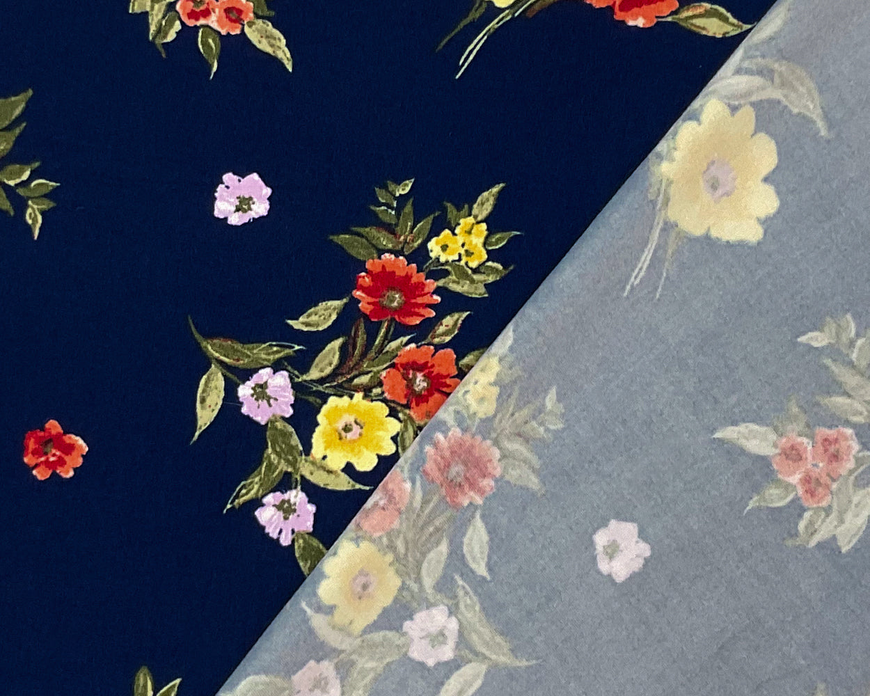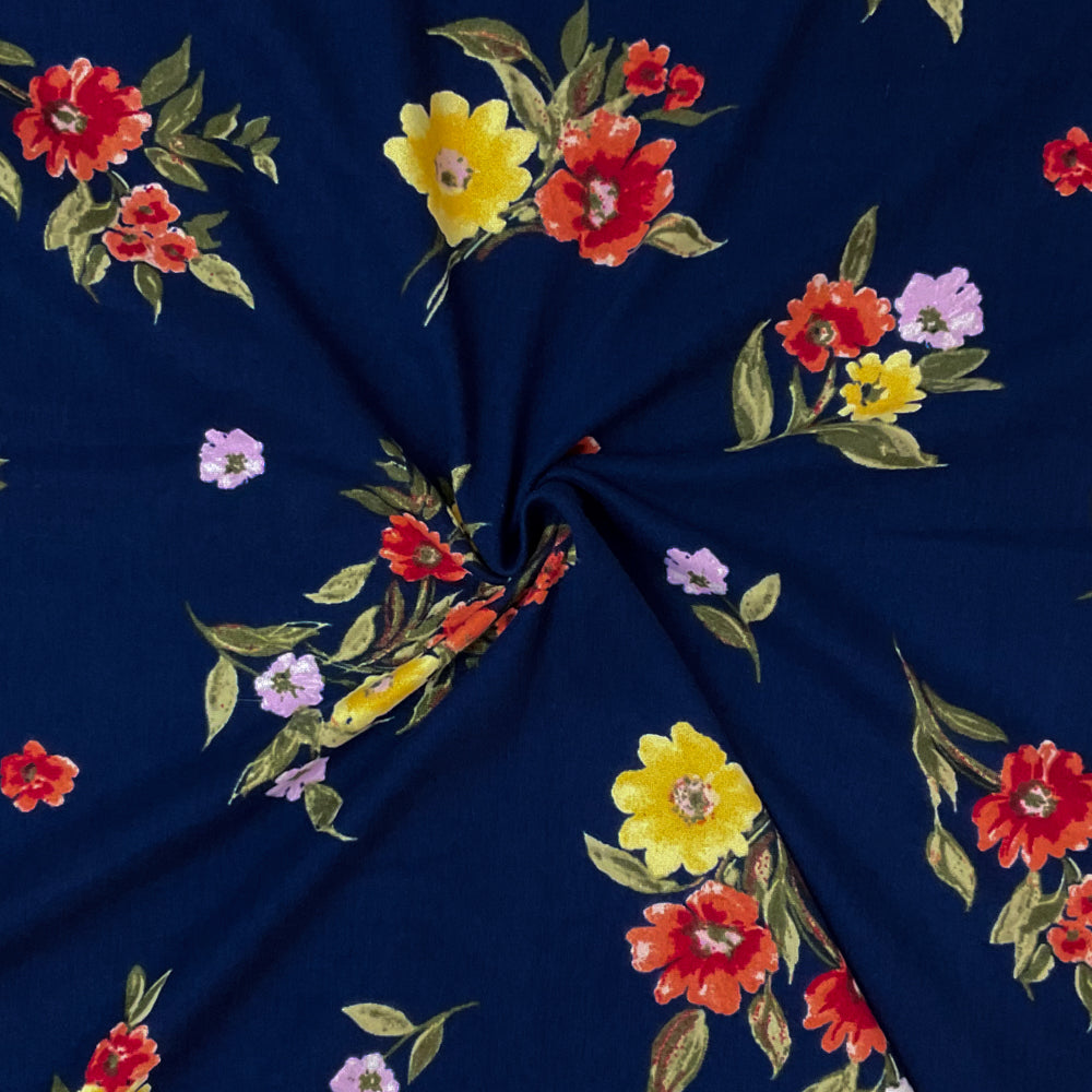 Blue-Multi Poly Spandex Stretch Floral Print DB Jersey Knit Fabric