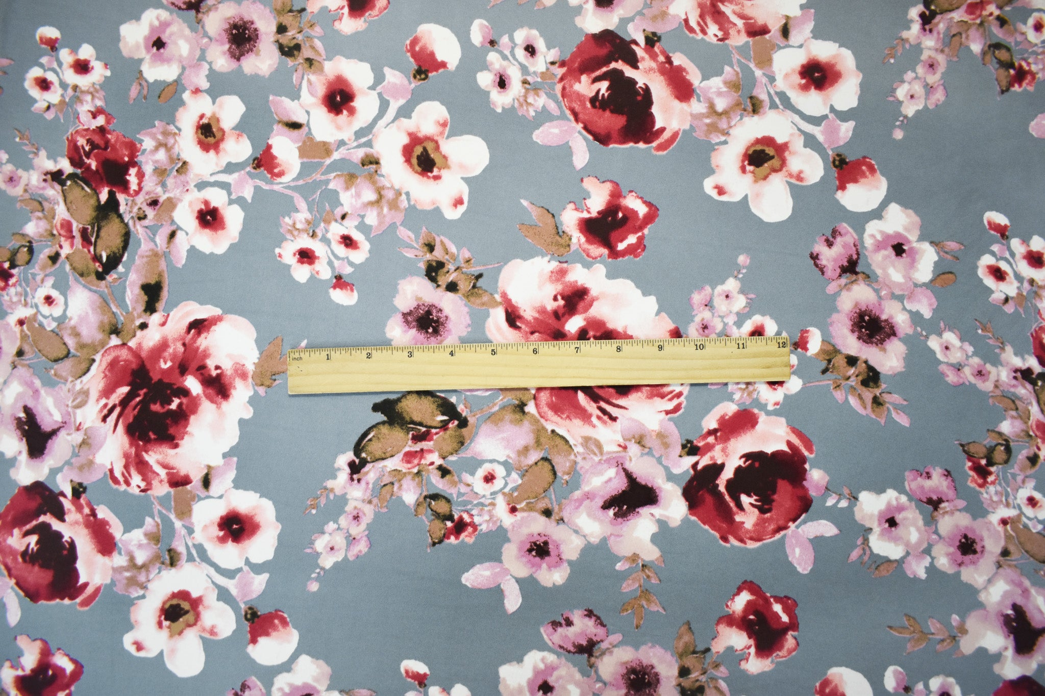 Gray-Multi Floral Printed Double Brushed Jersey Knit Fabric