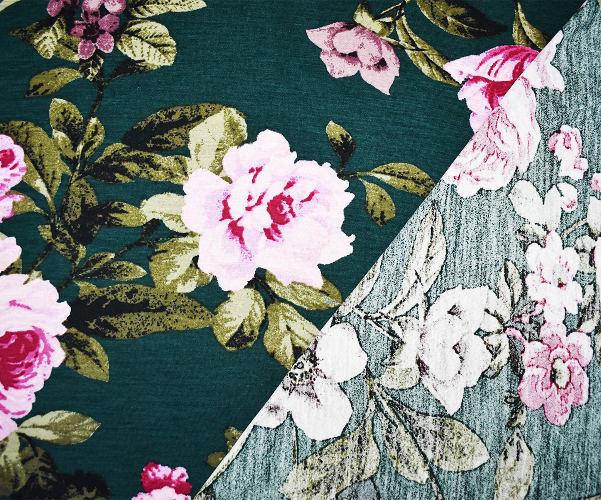 Green-Multi Rayon Stretch Spandex Floral Print Jersey Knit Fabric