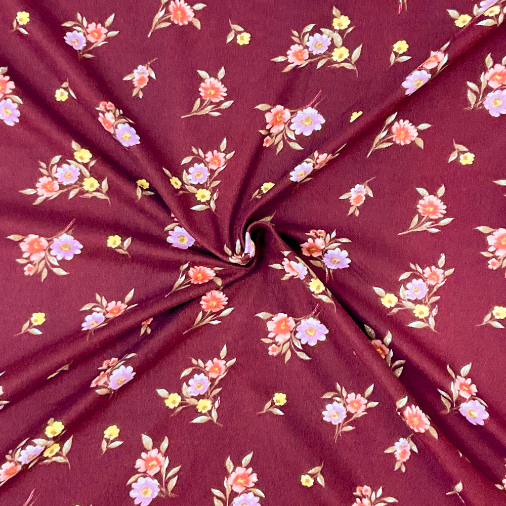 Red-Multi Poly Spandex Stretch Floral Print DB Jersey Knit Fabric