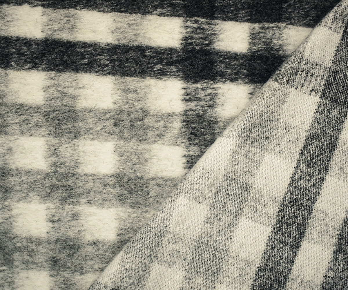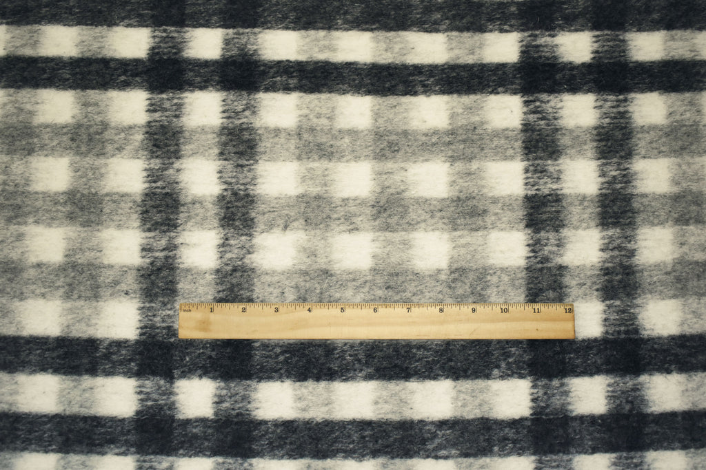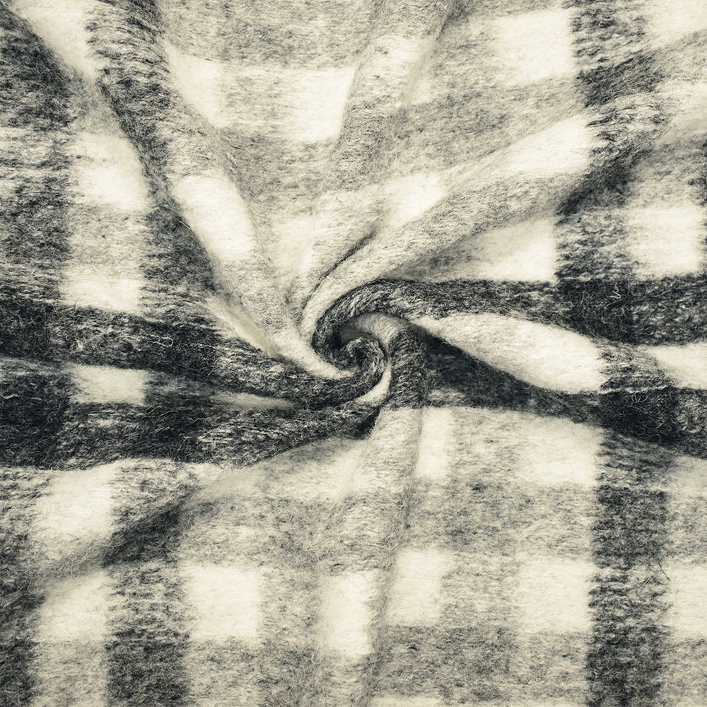 White-Gray-Black Italian Boiled Wool-Poly Plaid Check Knit Coating Fabric