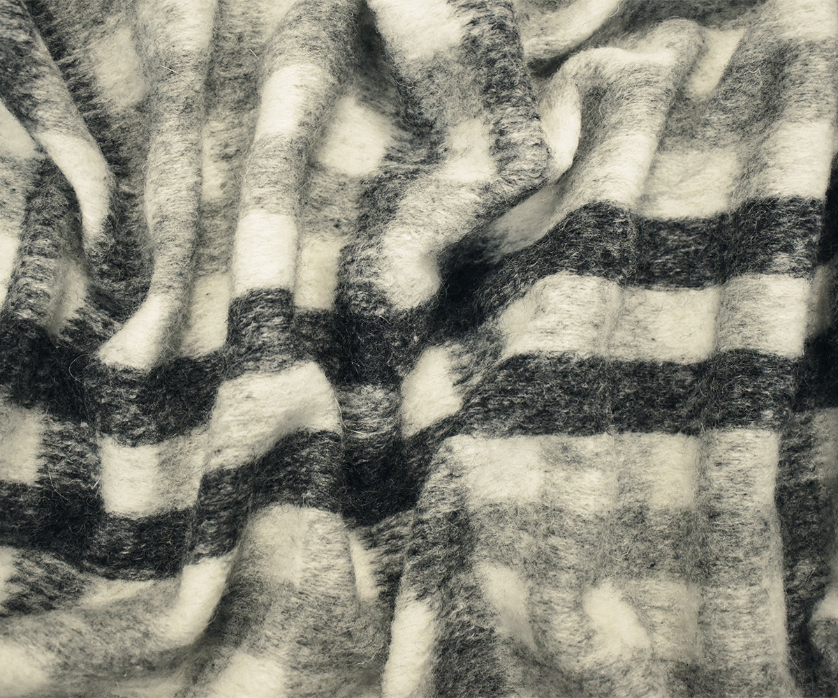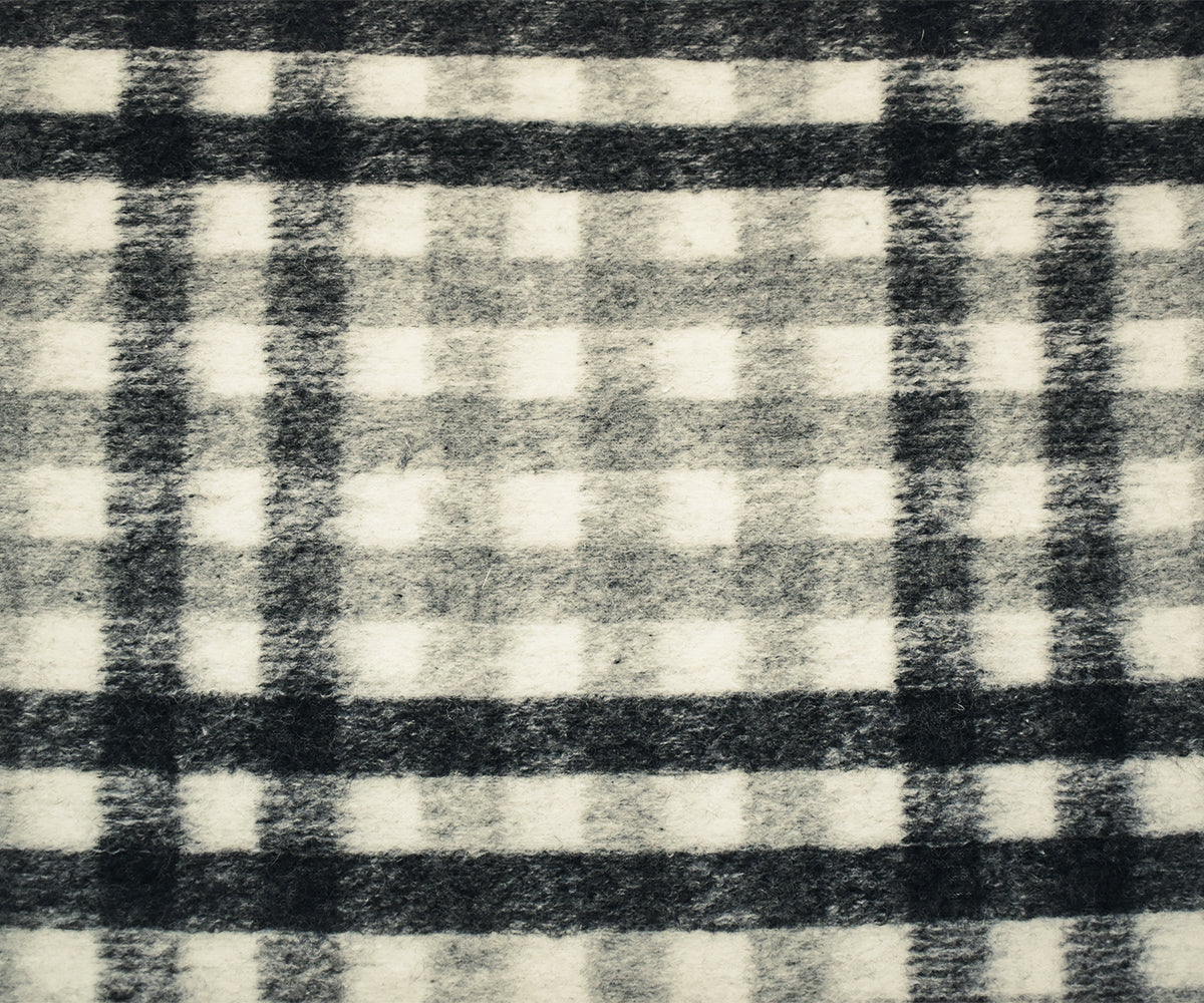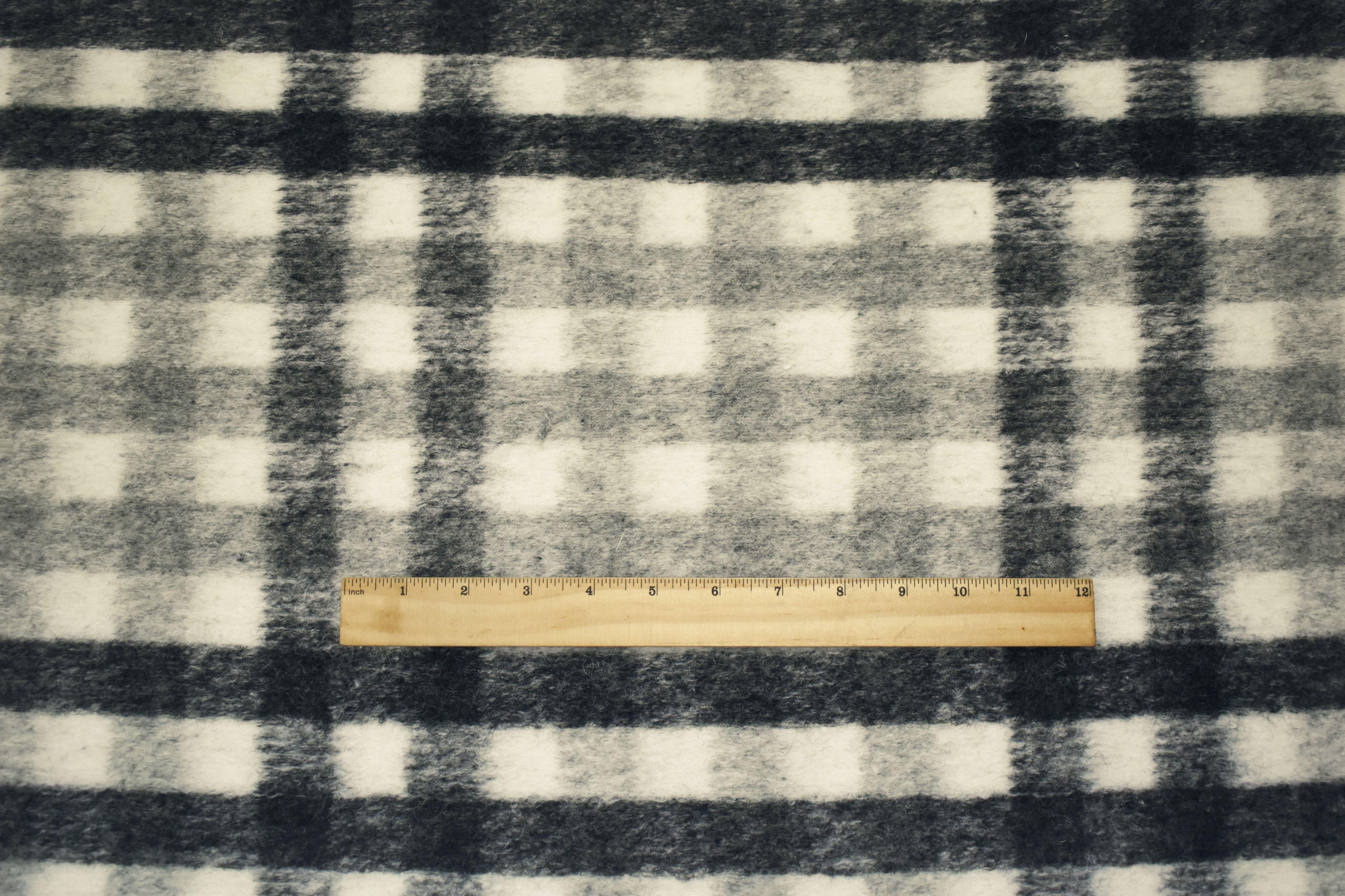 White-Gray-Black Italian Boiled Wool-Poly Plaid Check Knit Coating Fabric