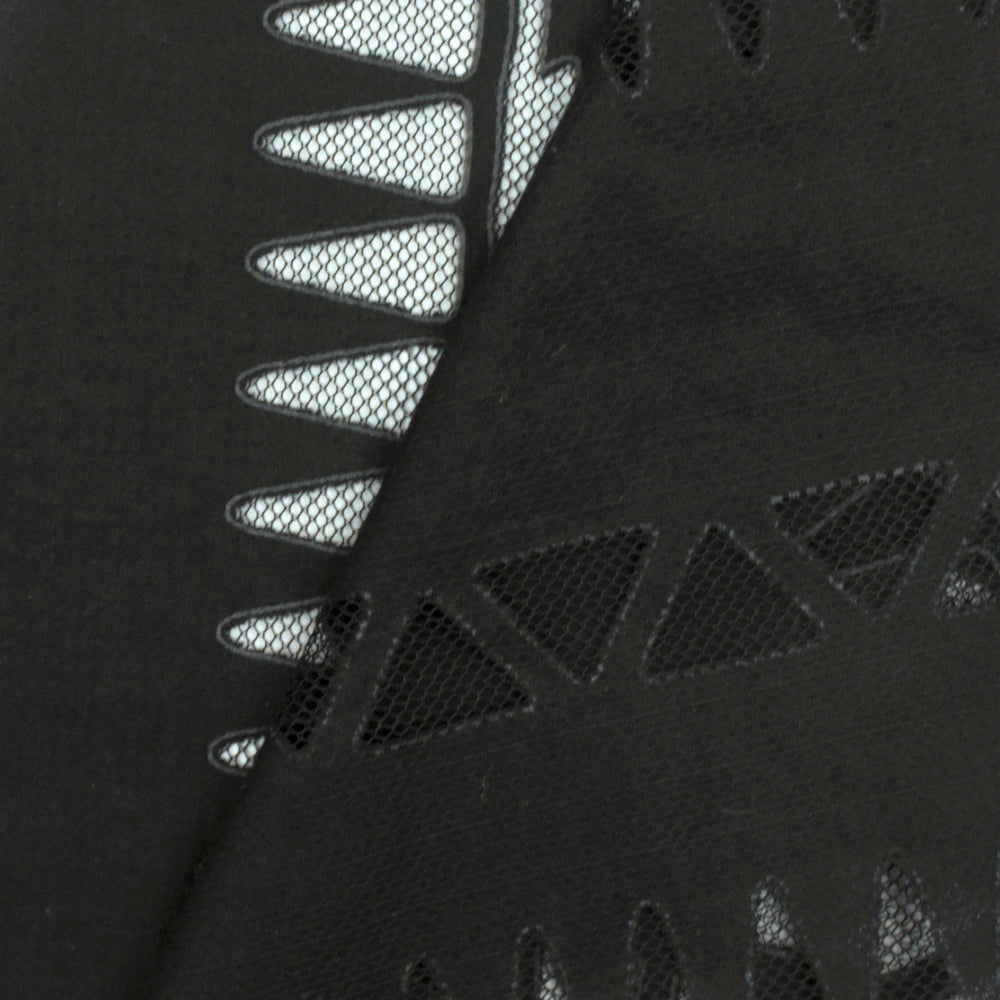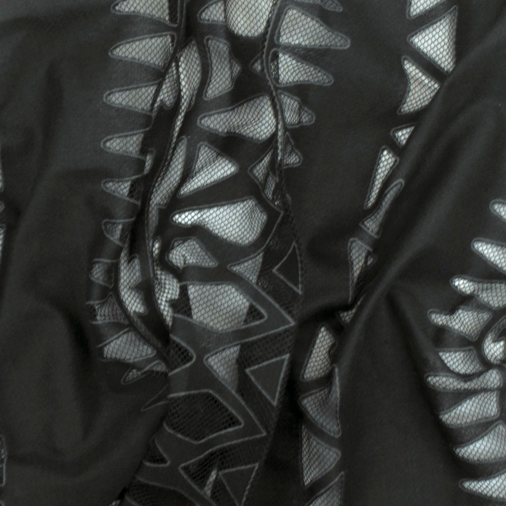 Black-Gray Tribal Printed Cotton-Poly Burnout Mesh Fabric