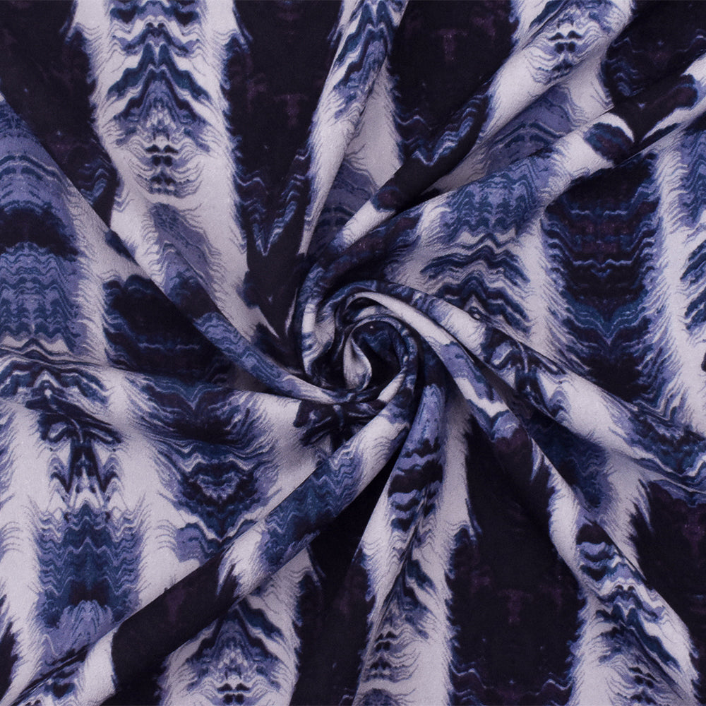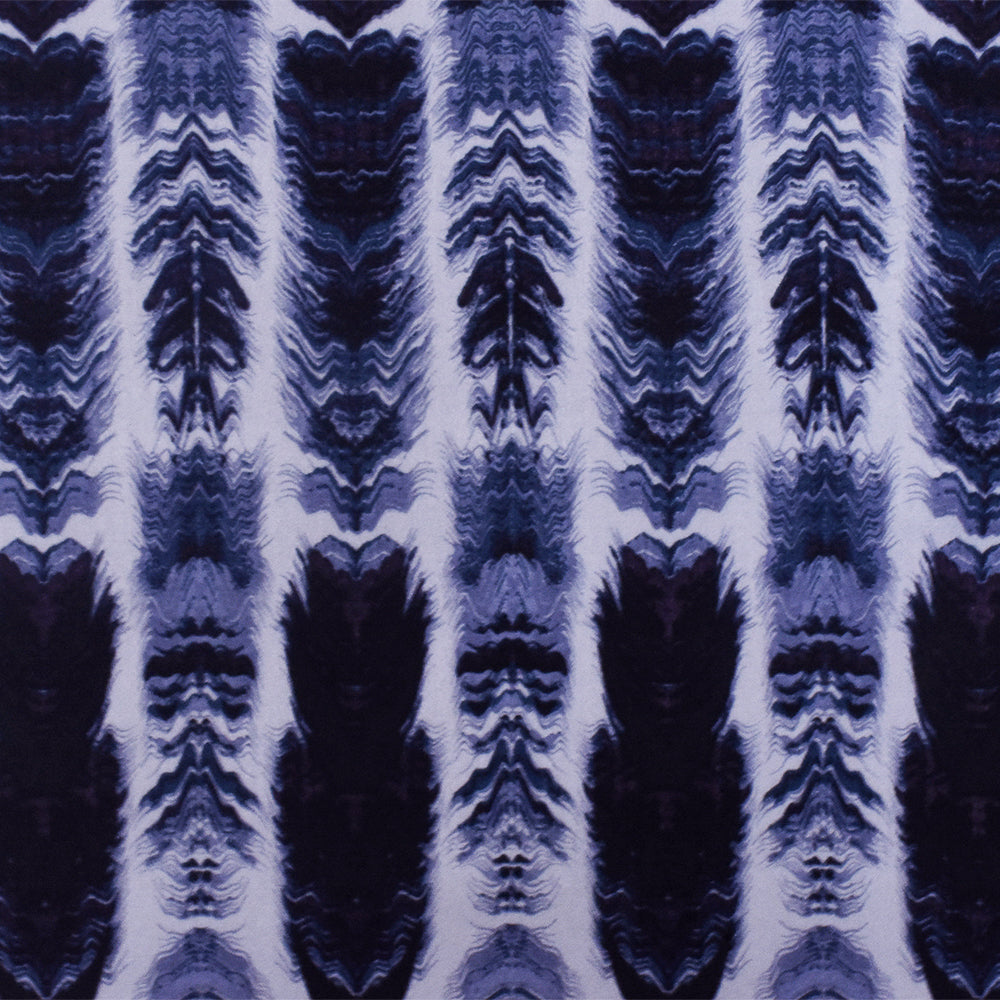 Moon Purple-Black-Multi Abstract Feather Print Poly Georgette Woven Fabric