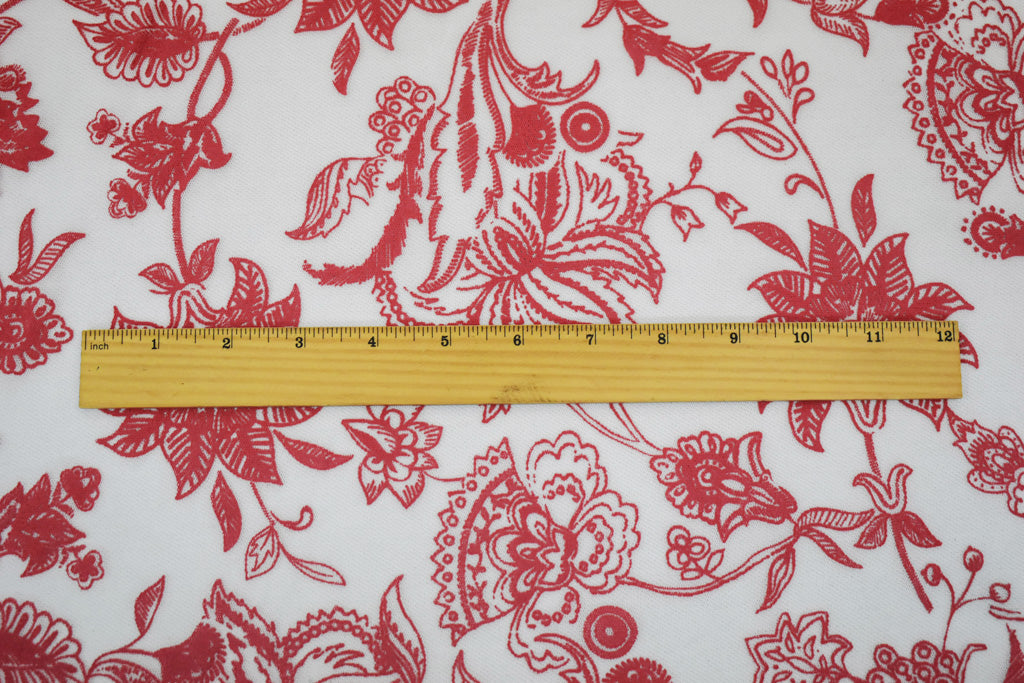 White-Red Nylon Floral Printed Mesh Tulle Knit Fabric