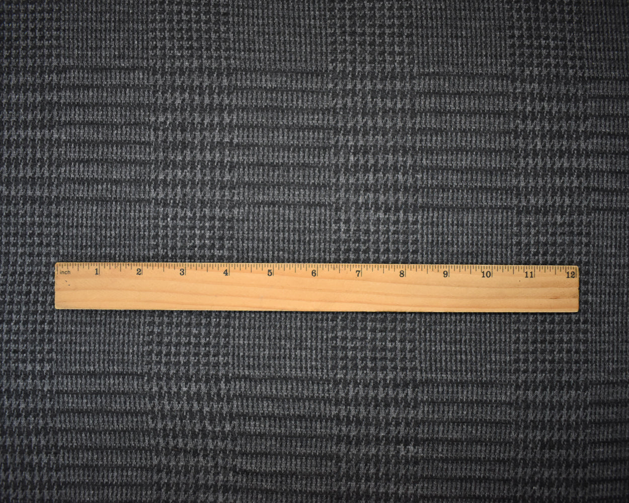 -2 YD PC - Black-Gray Cotton Wool Spandex Stretch Houndstooth Jacquard Double Knit Fabric