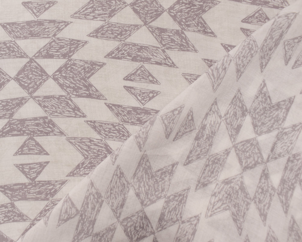 White-Gray Cotton Abstract Diamond Printed Lawn Woven Fabric