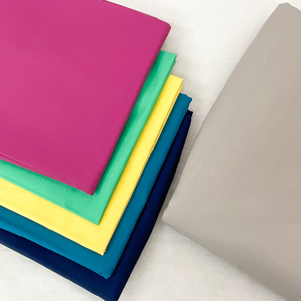 - Bundle fabrics include: 3/4 yard kelly green solid, 2 1/4 yards butter yellow solid, 1 5/8 yards blue solid, 1 5/8 yards fuchsia solid, 3 yards navy blue solid, 5 yards gray solid. Pattern is not included.