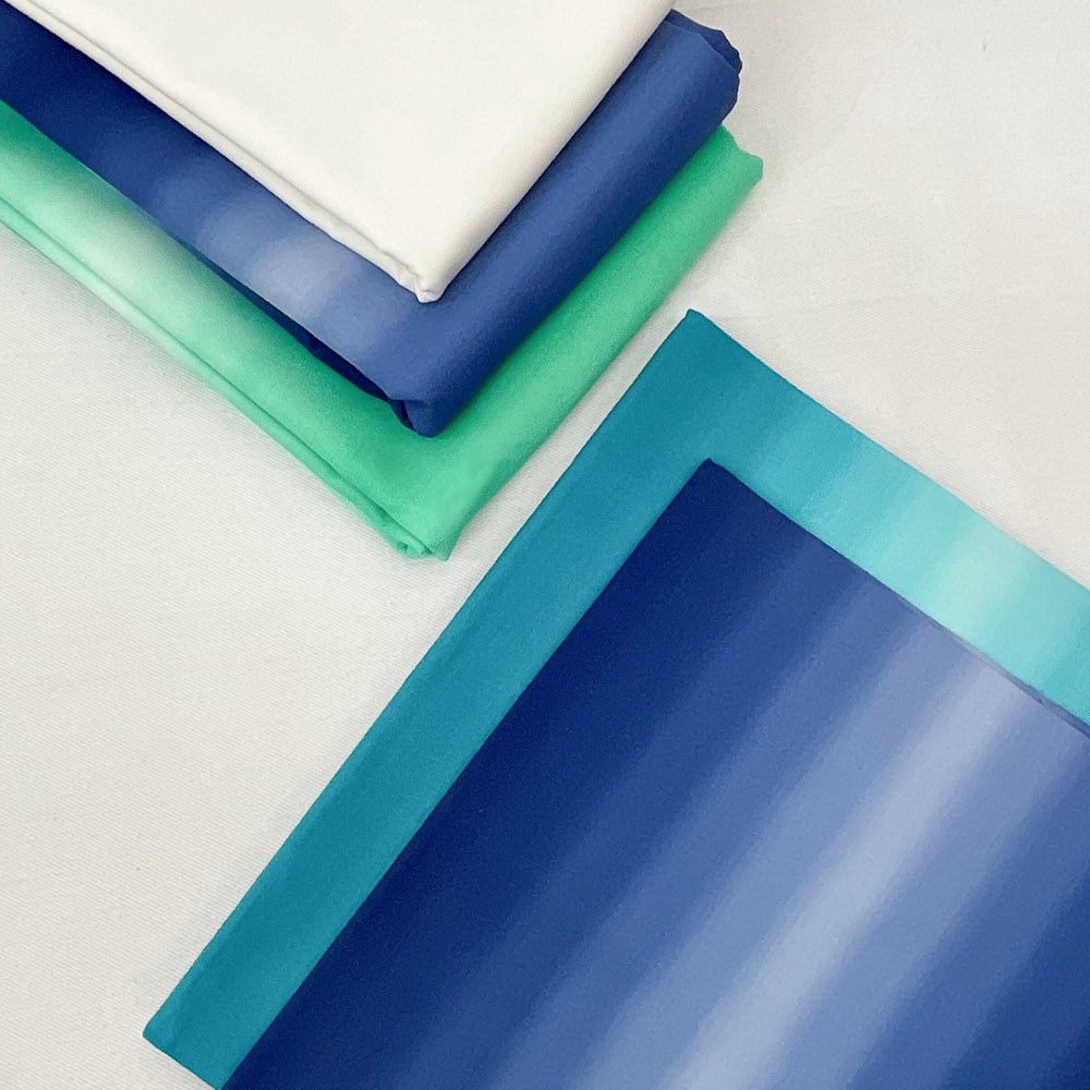 - Bundle fabrics include: 3/4 yd blue ombre, 1 yd teal ombre, 2 1/2 yds green ombre, 2 7/8 yds blue ombre, 3 yds ivory solid. Pattern is not included
