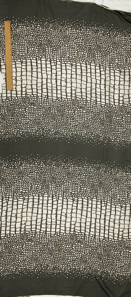 Black-Brown-Ivory Reptile Pattern Printed Silk Chiffon Fabric
