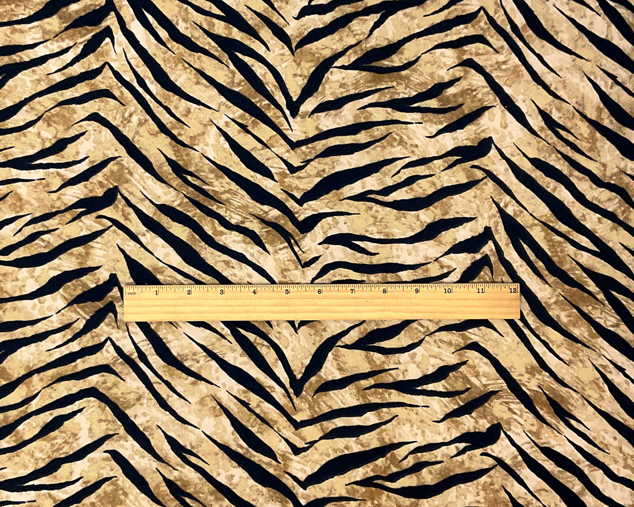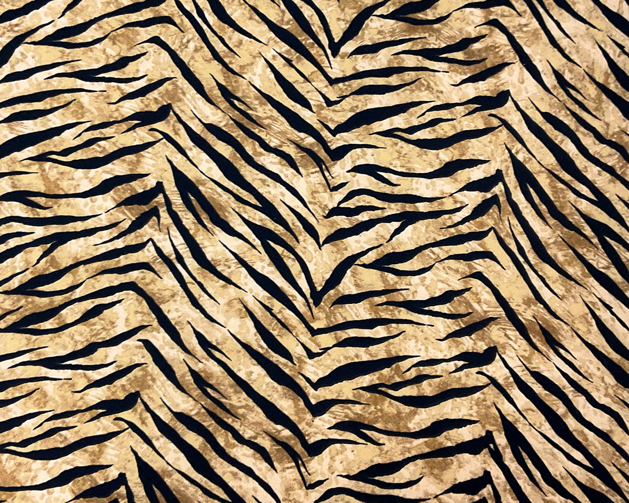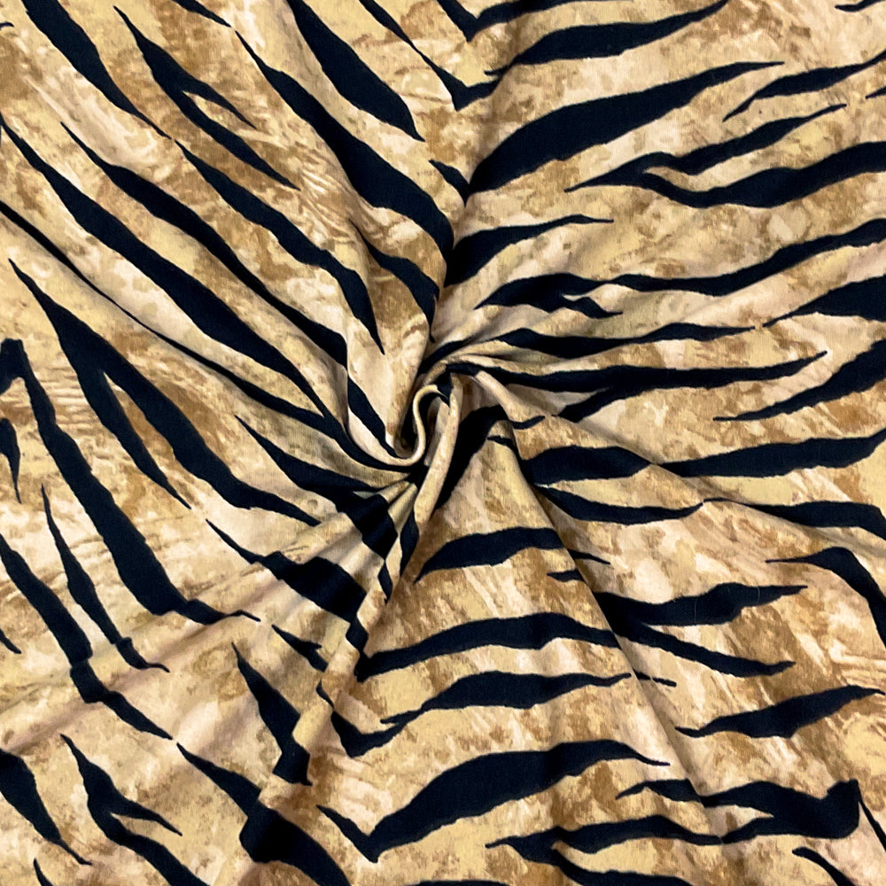 Black-Brown Poly Spandex Stretch Tiger Print DB Jersey Knit Fabric