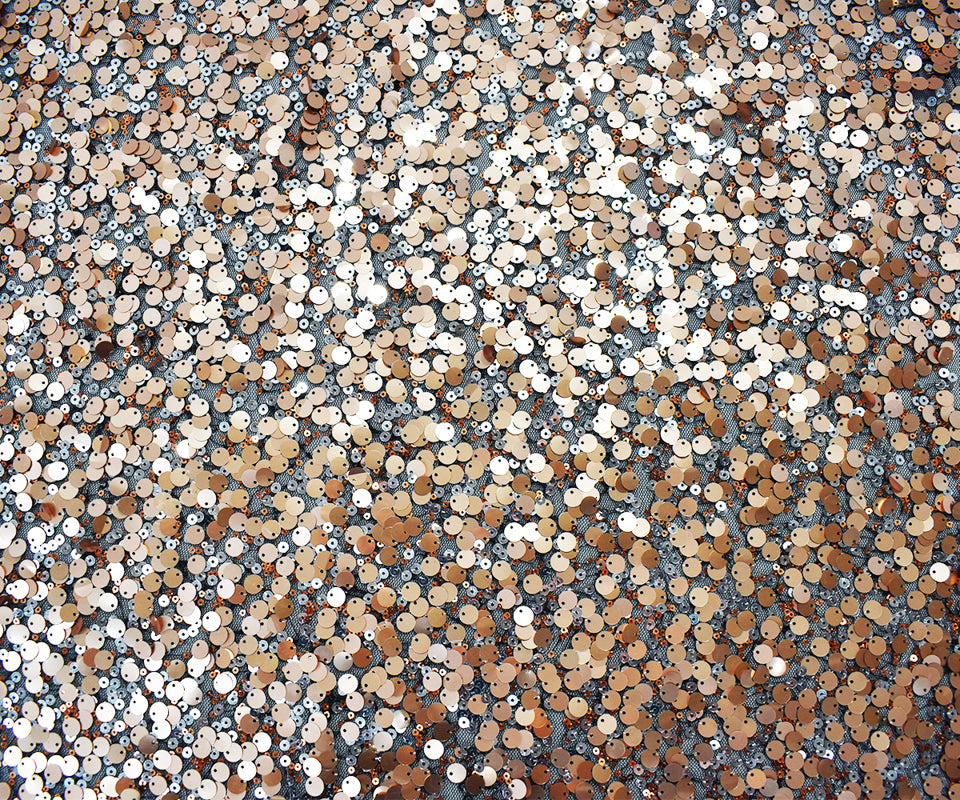 Black-Rose Gold-Multi Poly Abstract Sequined Tulle Mesh Fabric