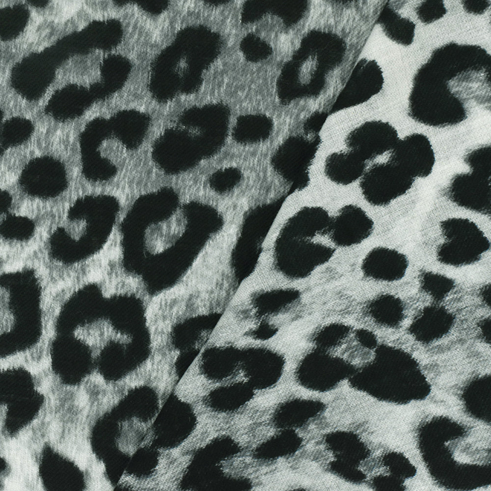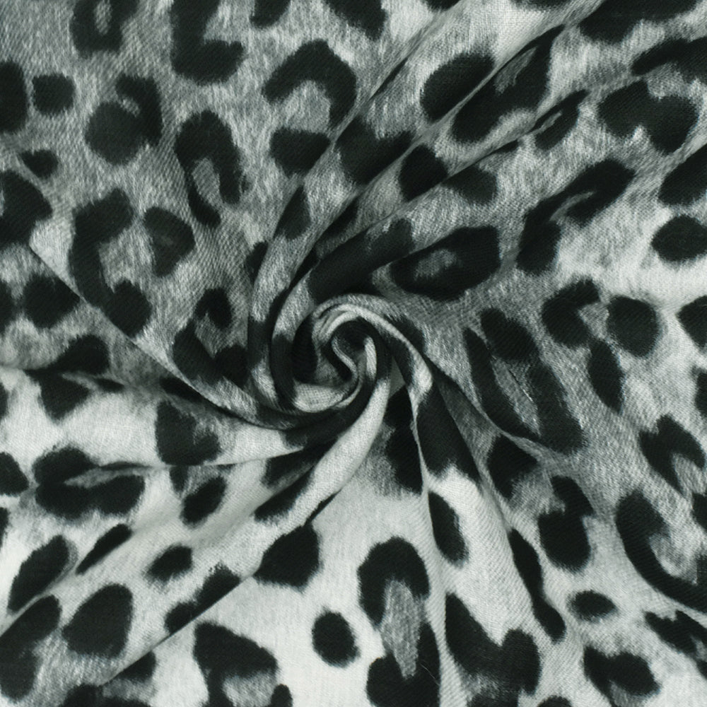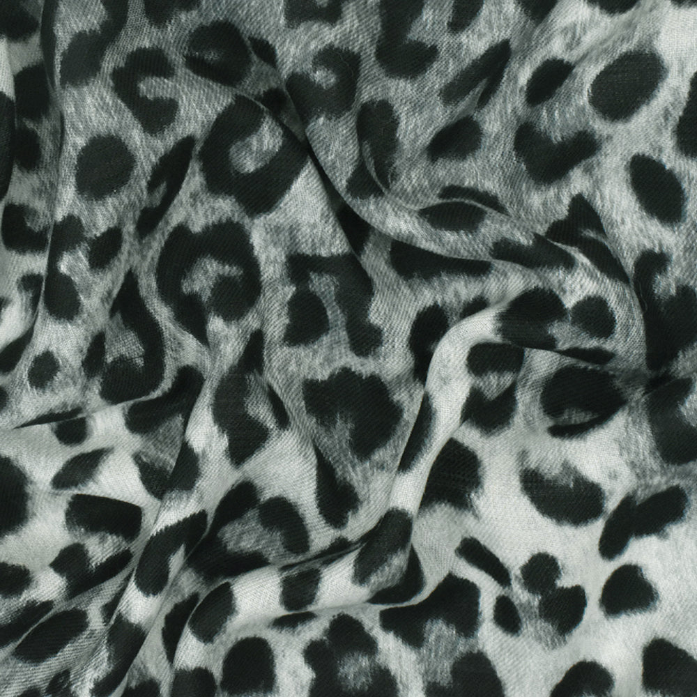 Gray-Black-Multi Tropical Wool Cheetah Printed Twill Woven Fabric