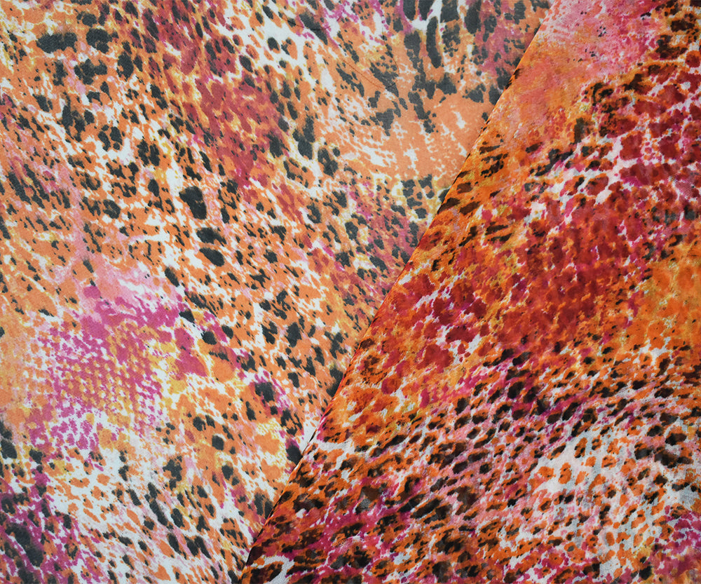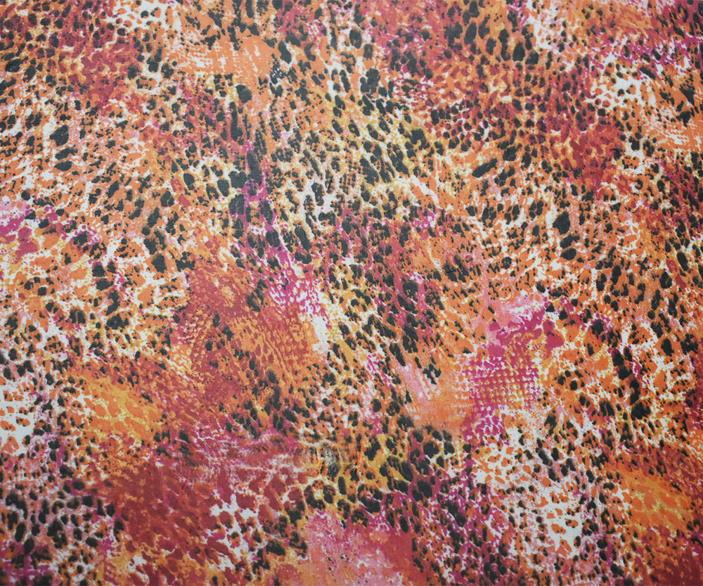 Orange-Red-Multi Reptile Printed Poly Chiffon Woven Fabric