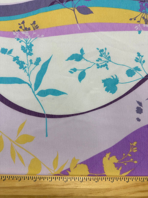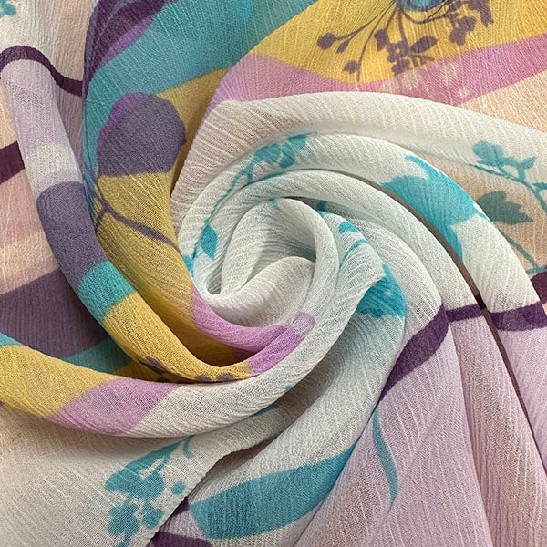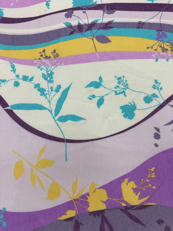 Purple Multi Floral Crinkled Poly Chiffon Fabric