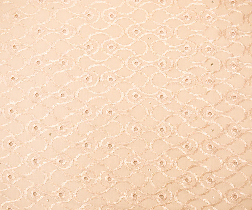Beige Poly-Cotton Embroidery Eyelet Floral Scallop Rhinestone Woven Fabric