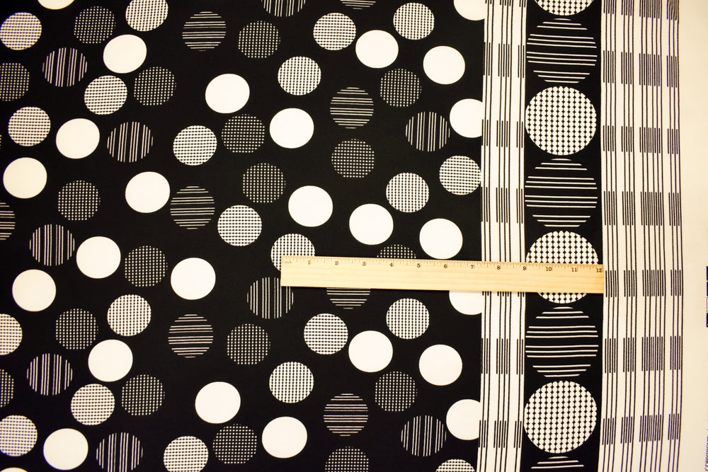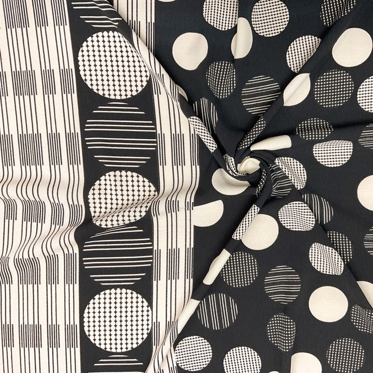 Black-Ivory Poly Circle Abstract Printed Pebble Crepe Woven Fabric