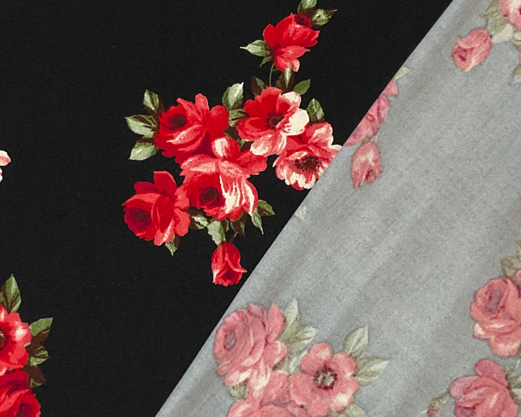 Black-Multi Poly Stretch Spandex Floral Print DB Jersey Knit Fabric