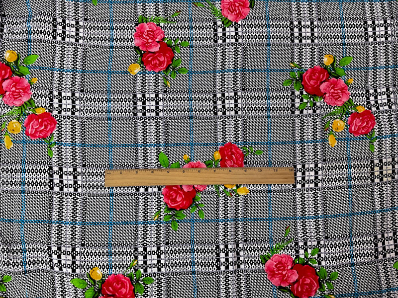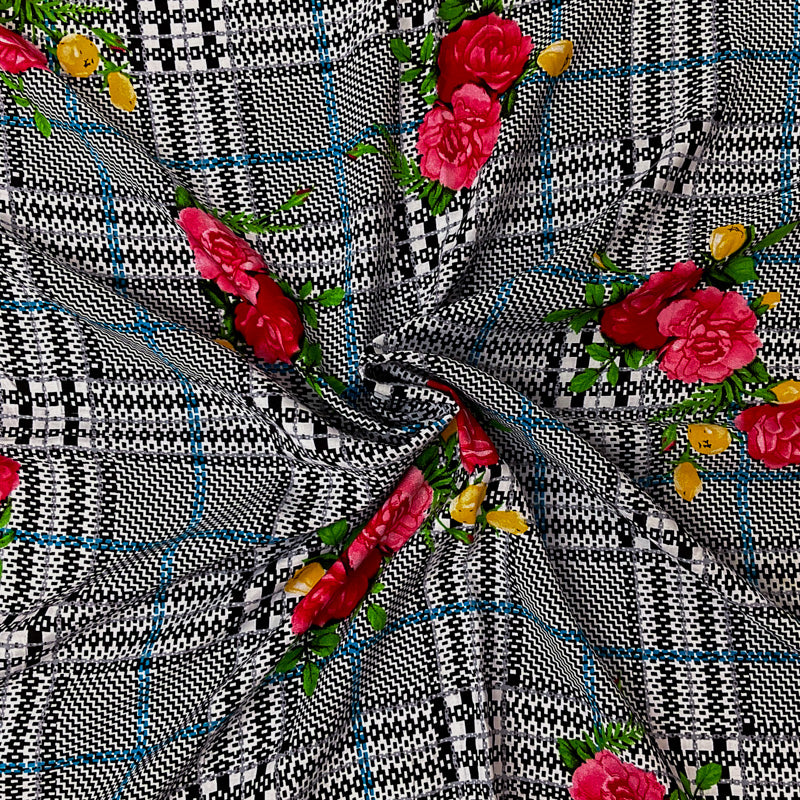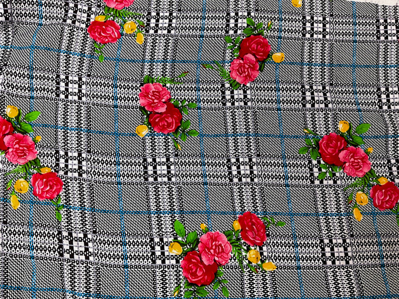 Black-Red-Multi Rayon Floral Plaid Printed Challis Woven Fabric
