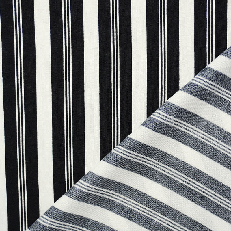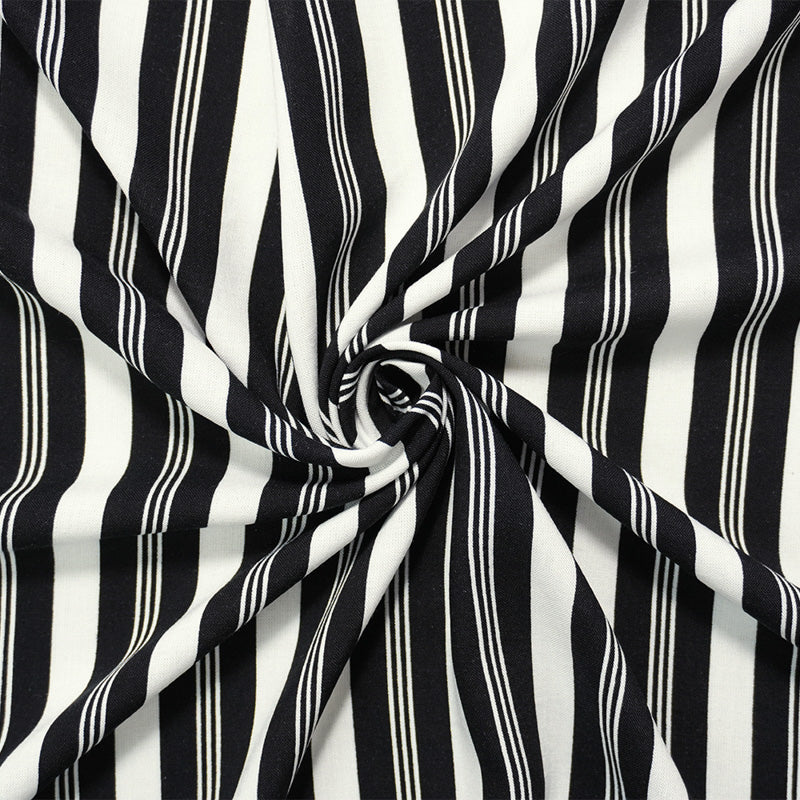 Black-White Rayon Stripe Printed Challis Woven Fabric