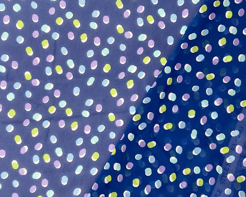 Blue-Green-Multi Poly Dot Printed Chiffon Woven Fabric