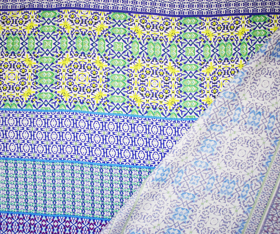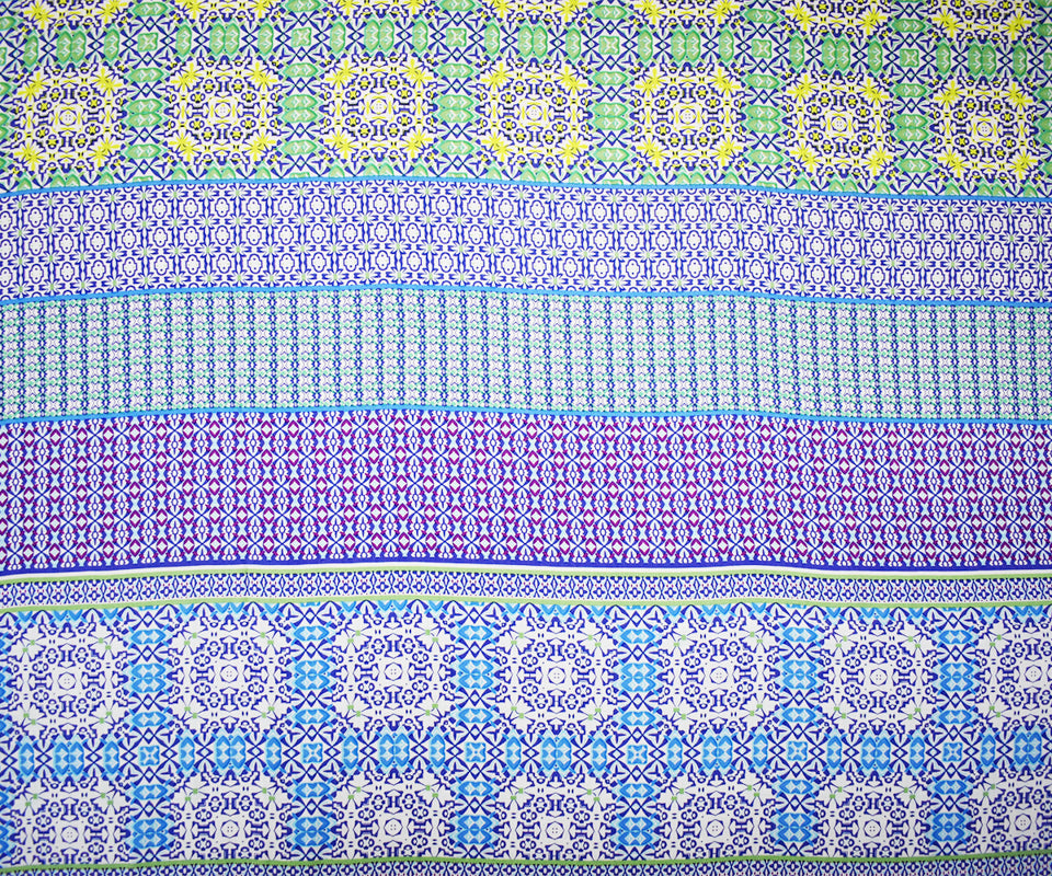 -Blue-Multi Rayon Moroccan Border Printed Twill Woven Fabric