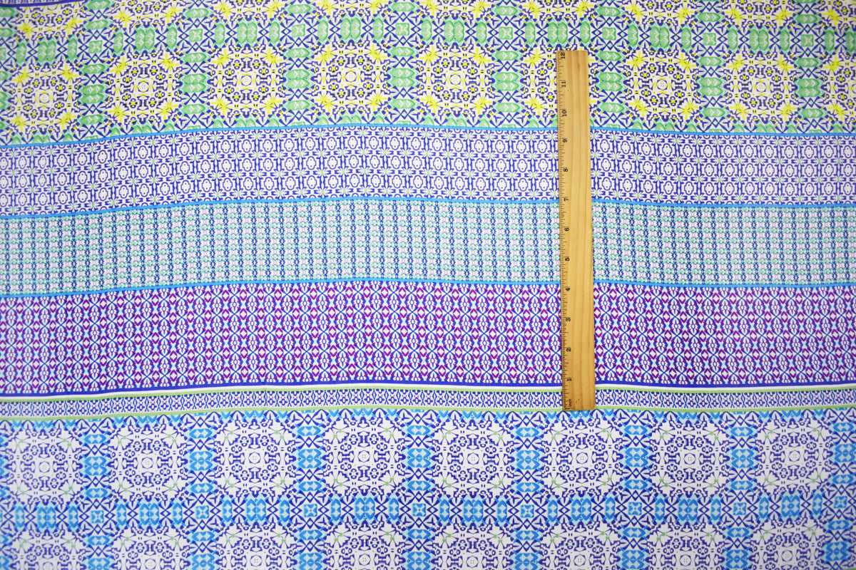 Blue-Multi Rayon Moroccan Border Printed Twill Woven Fabric