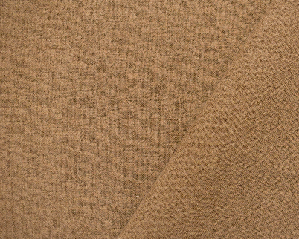 Brown Linen-Cotton Blend Crinkled Double Woven Fabric