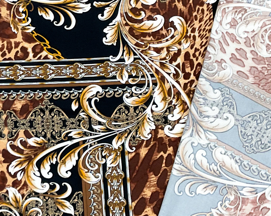 -Brown-Multi Poly Spandex Stretch Braque Print Double Brush Jersey Knit Fabric