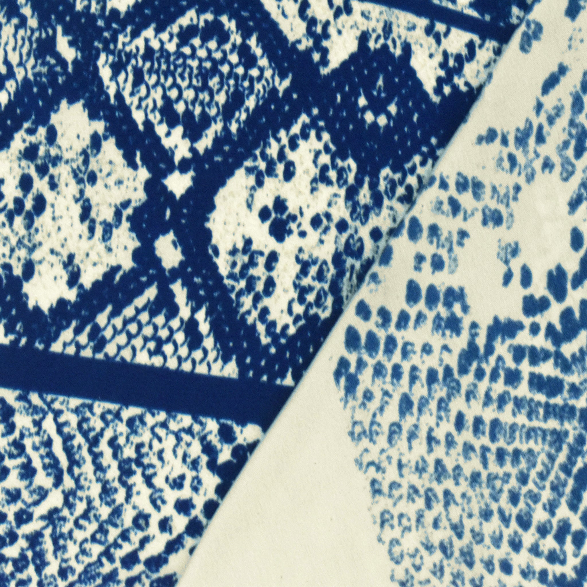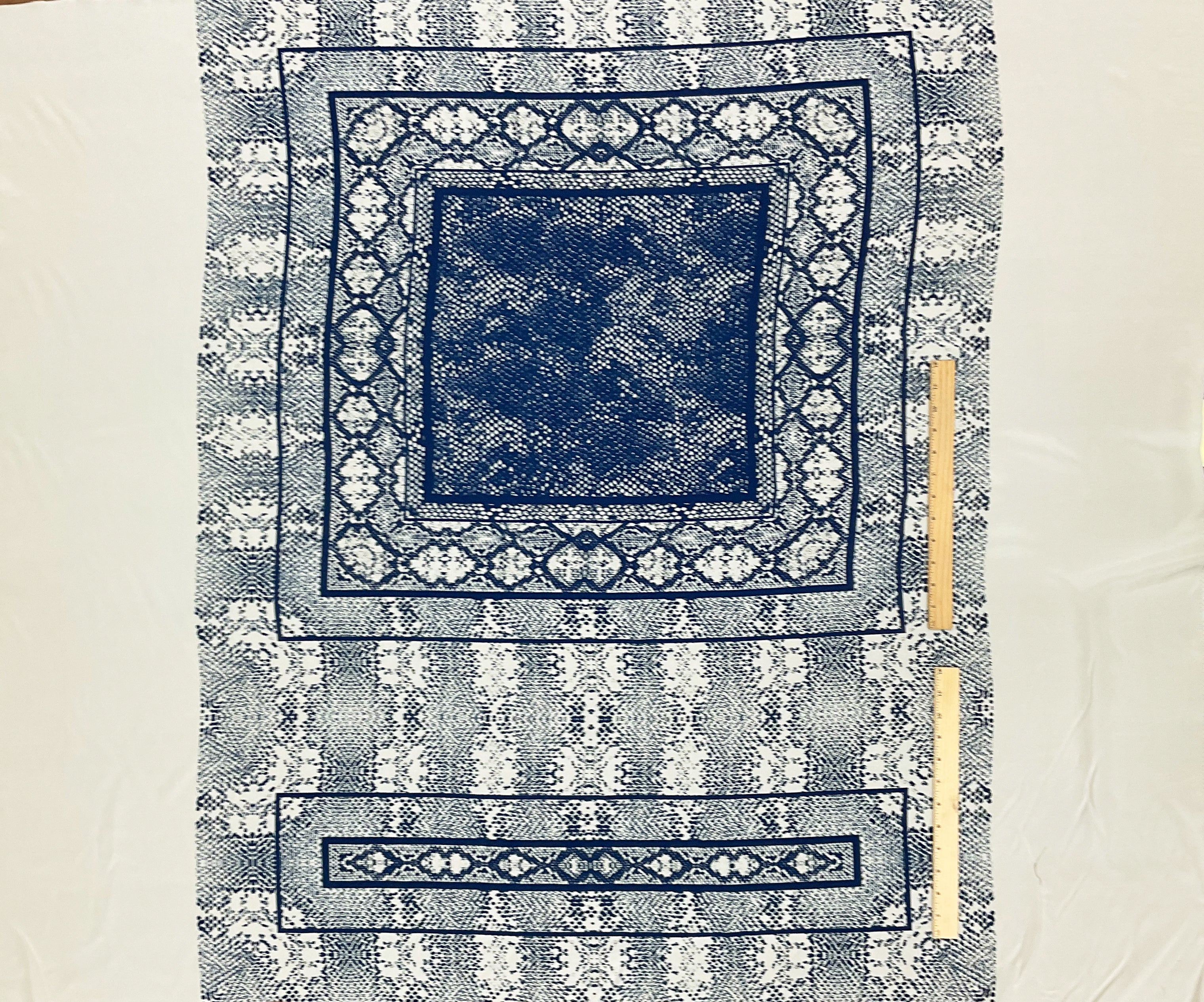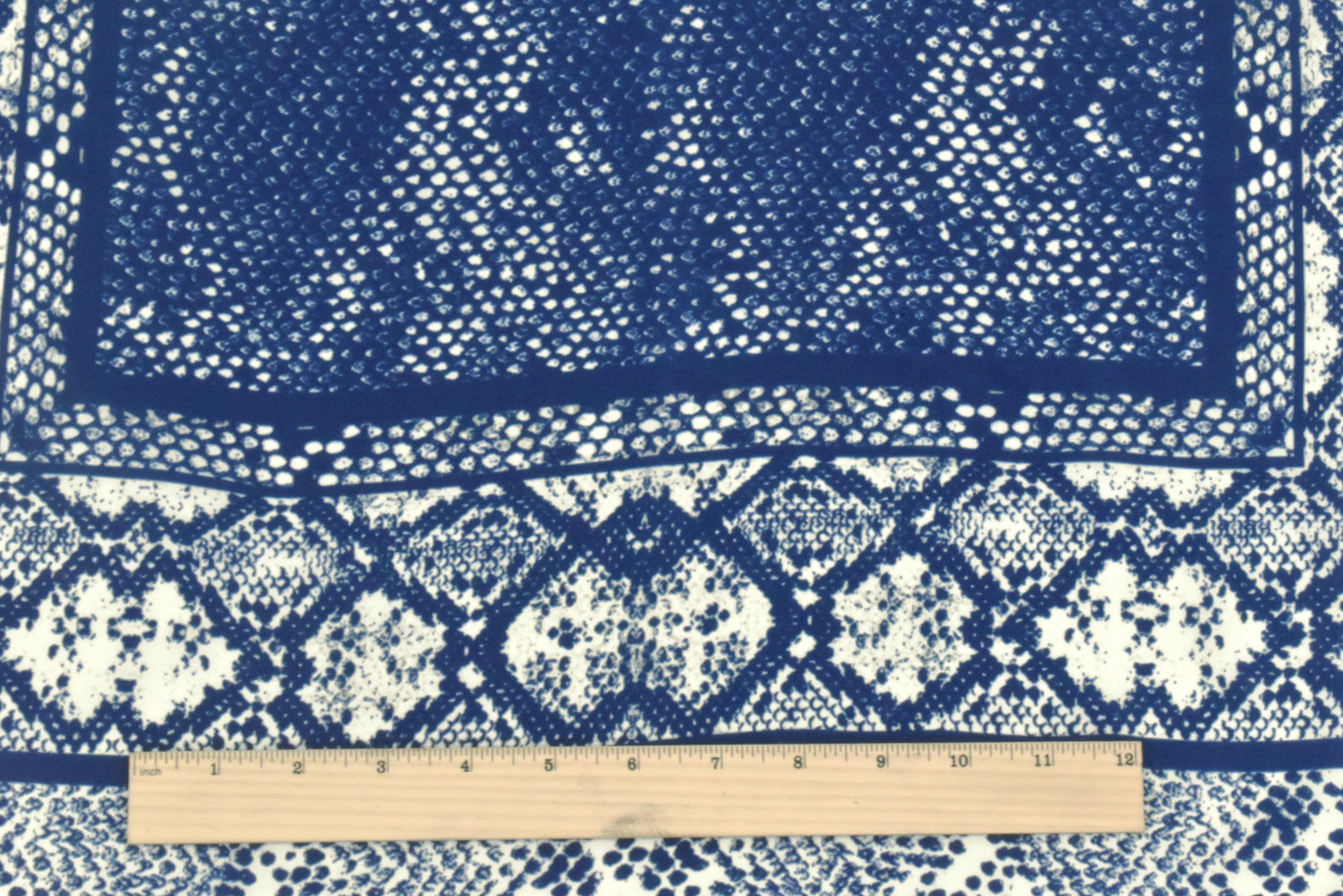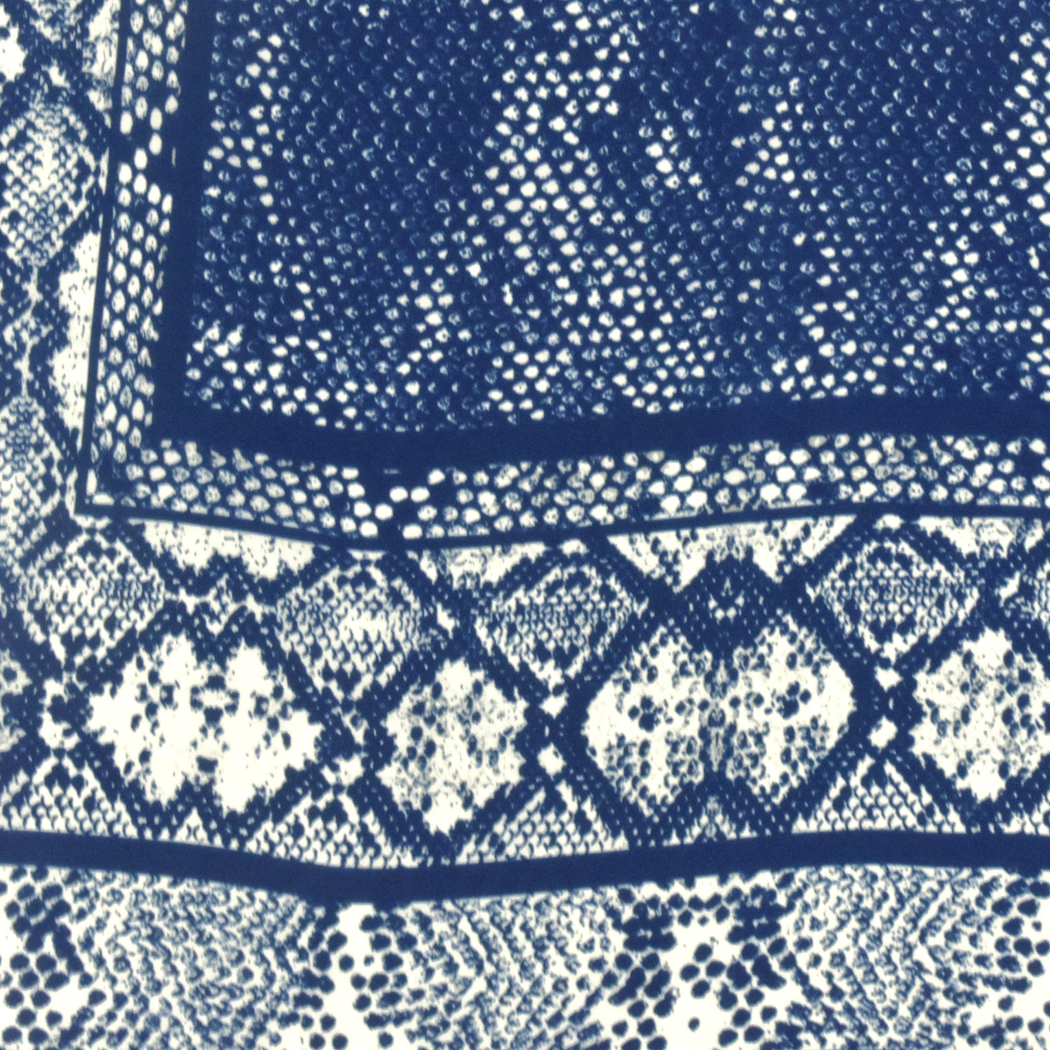 Antique Ivory-Blue Snake Border Panel Printed Silk Crepe De Chine Fabric