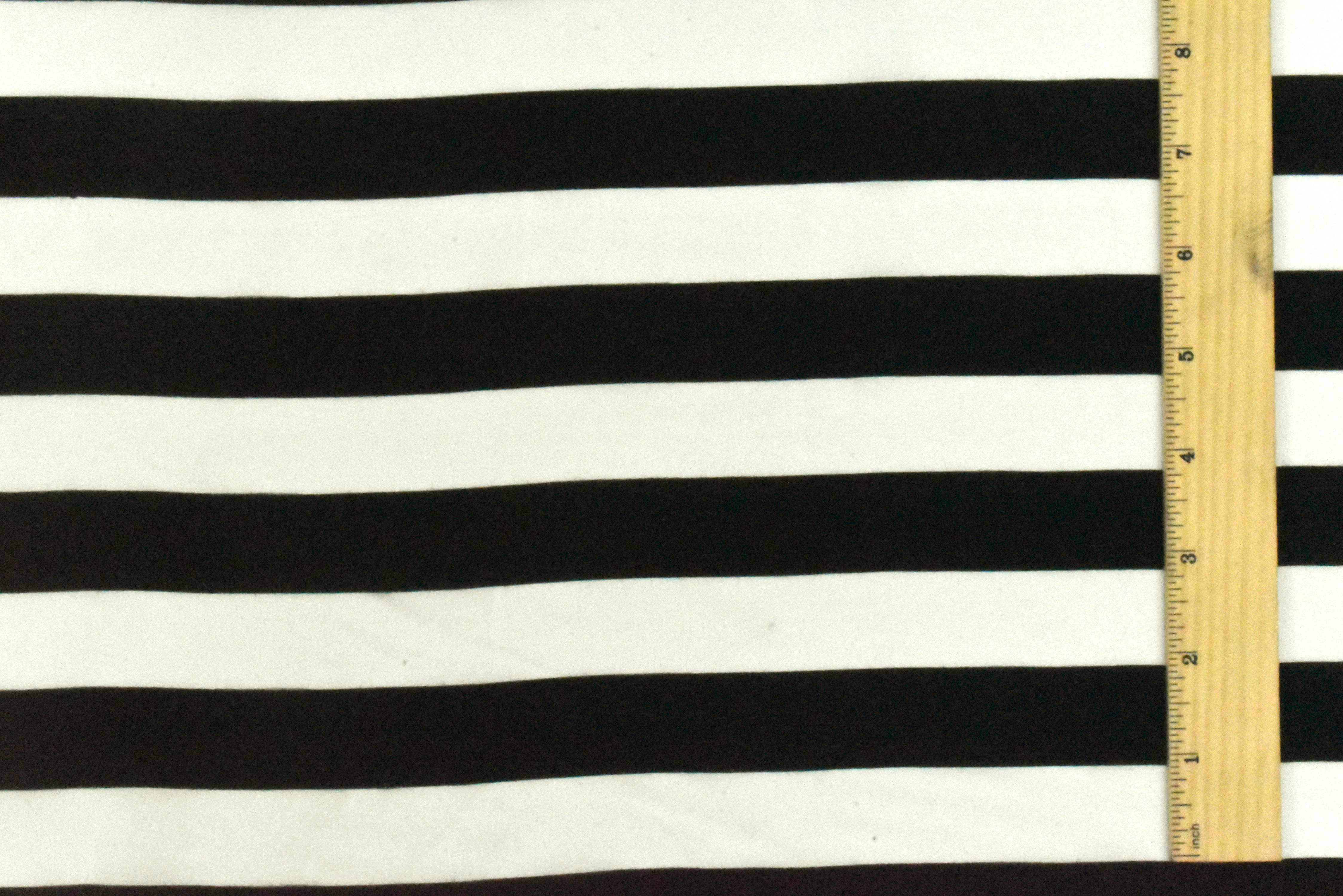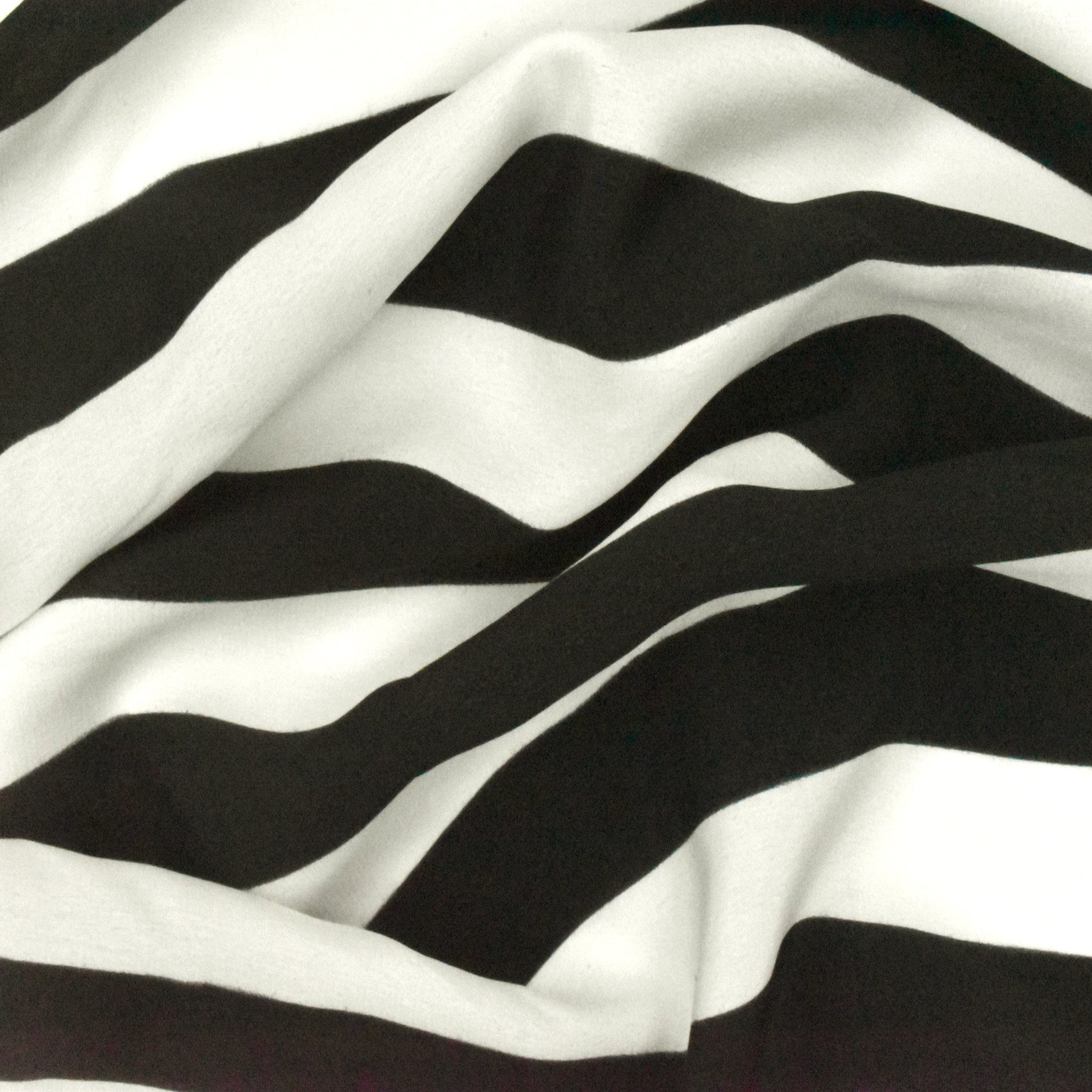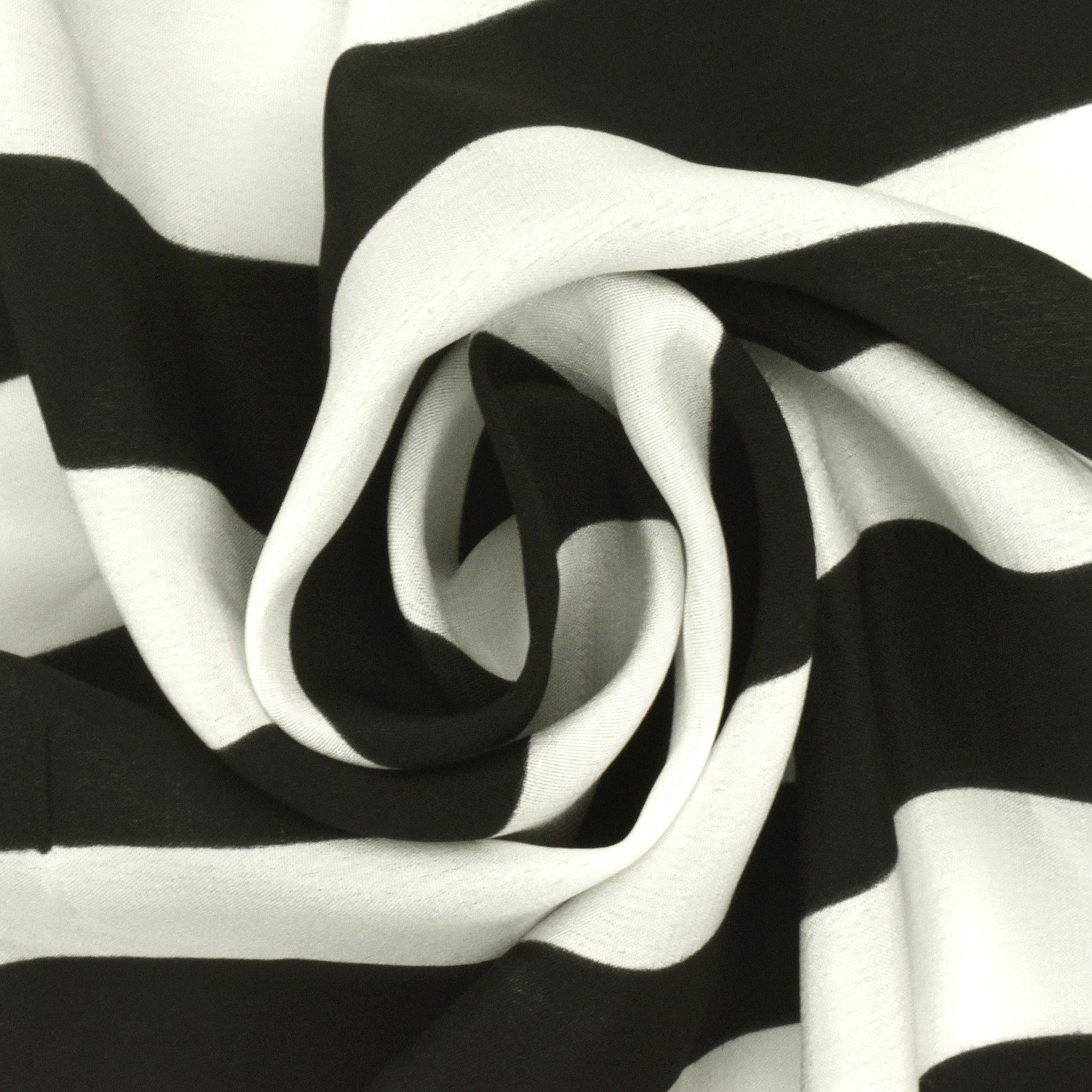 Basic Black-White Stripe Printed Silk Crepe De Chine Woven Fabric