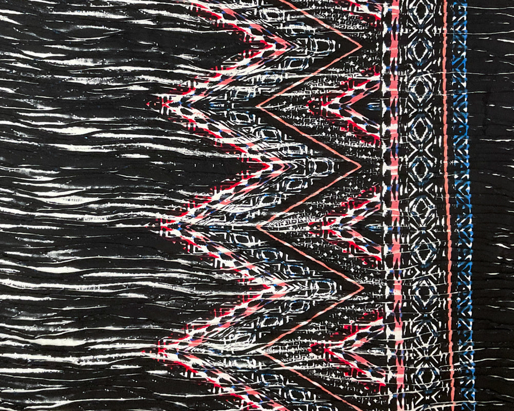 Black-Blue-Multi Poly Chevron Border Printed Knife Pleat Knit Fabric