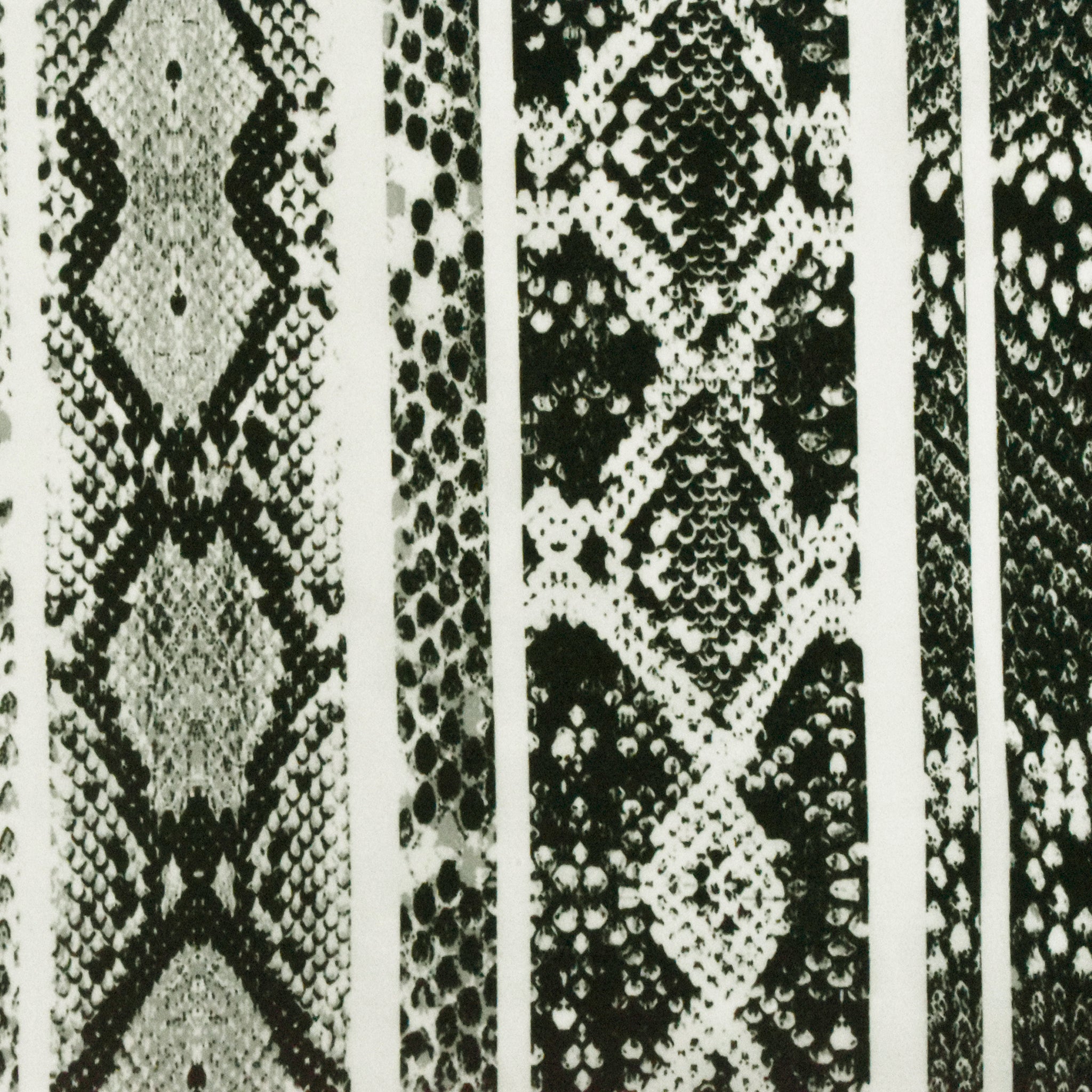 Black-Gray-Ivory Snake Striped Printed Silk Crepe De Chine Fabric