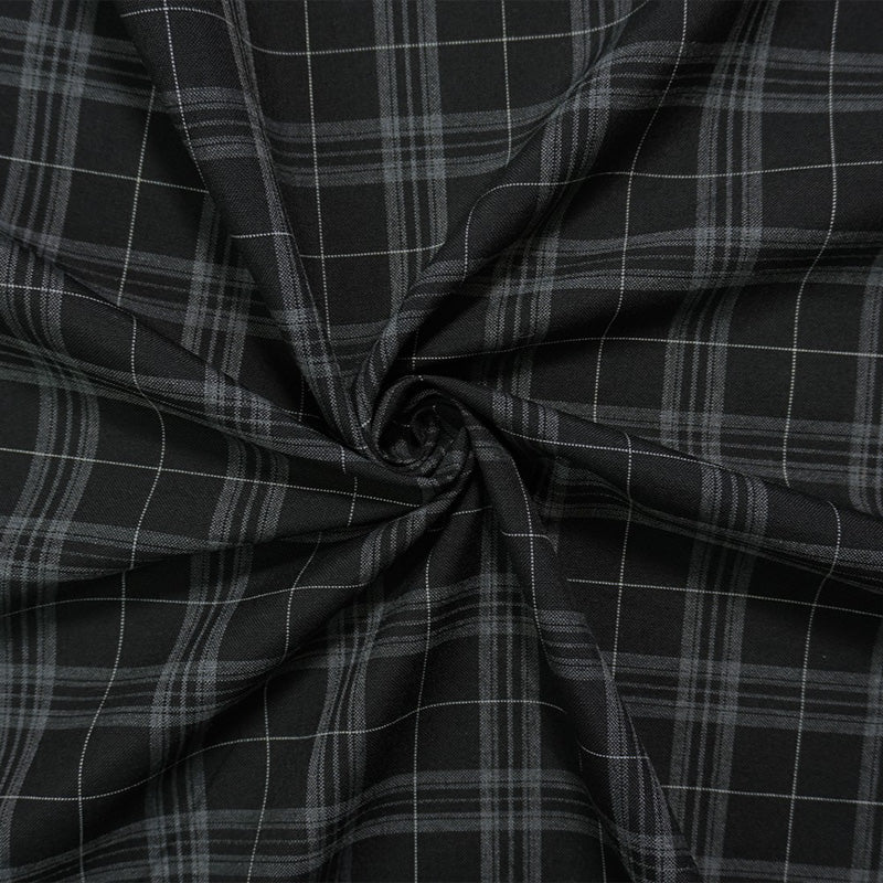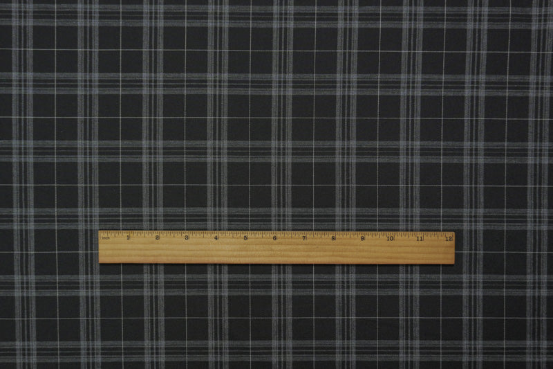 Black-Gray Poly Wool Plaid-Check Japanese Woven Shirting Fabric