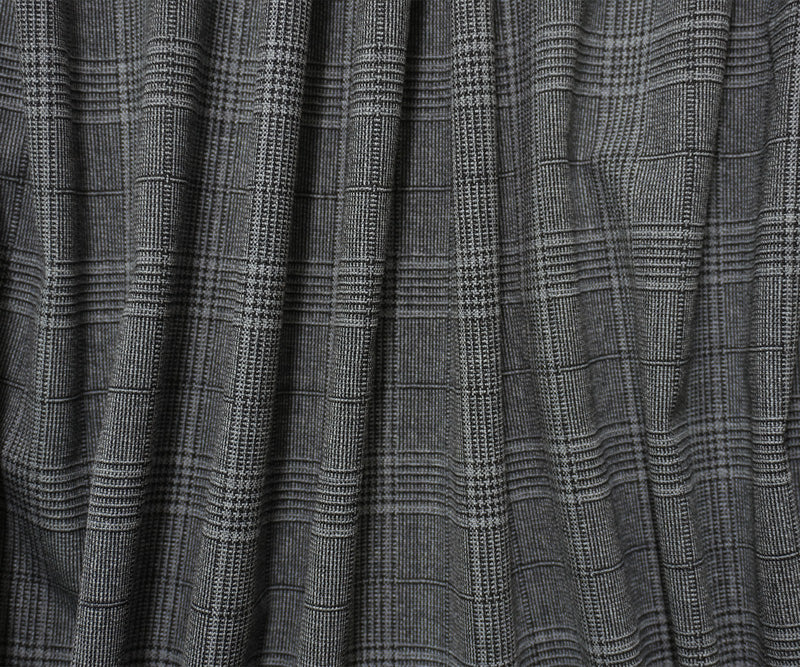 Black-Gray Wool Poly Glen Plaid Woven Shirting Fabric