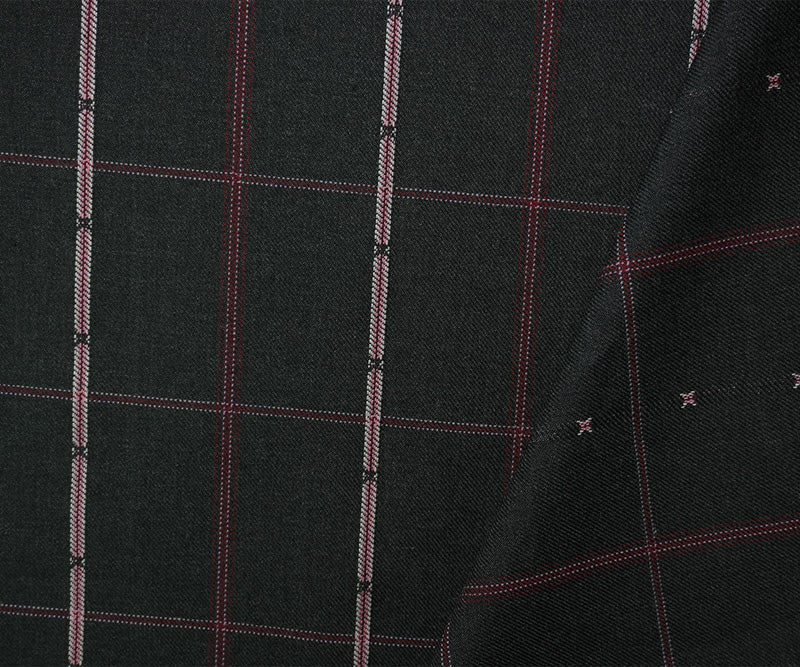 Black-Red-Multi Poly Wool Plaid-Check Twill Woven Suiting Fabric