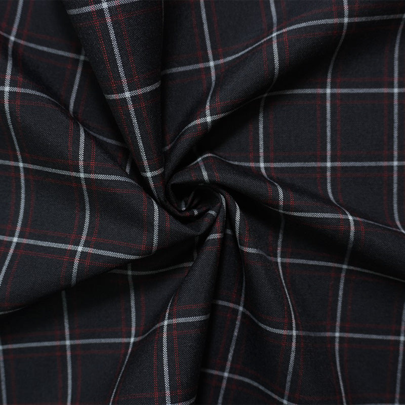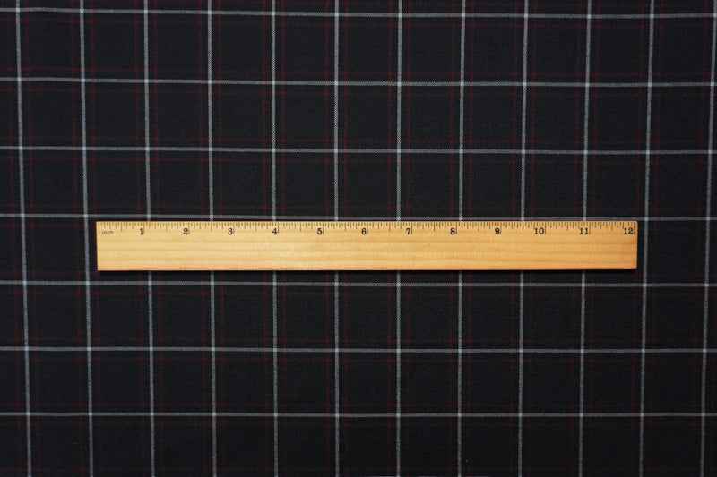 Black-Red-White Poly Wool Plaid Woven Suiting Fabric