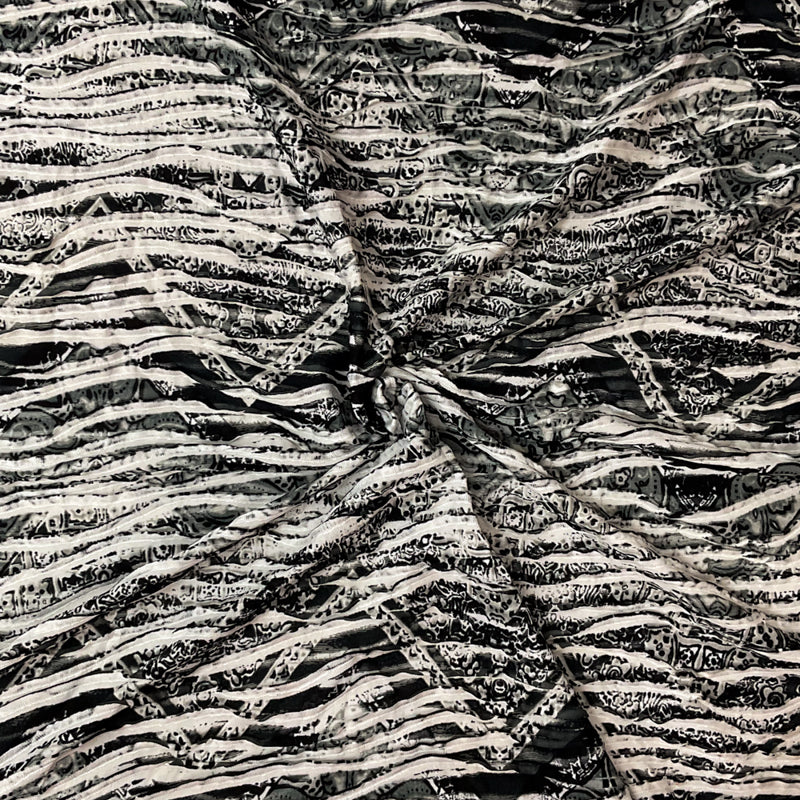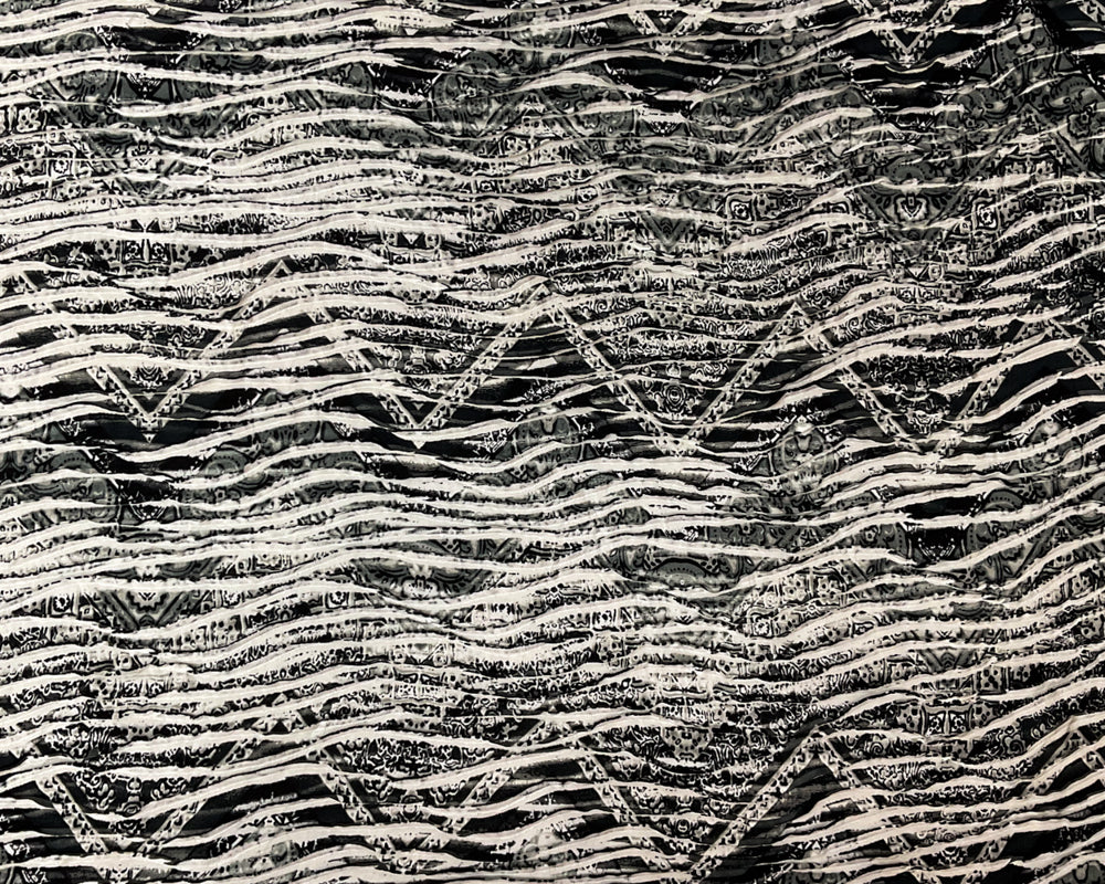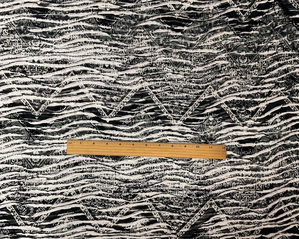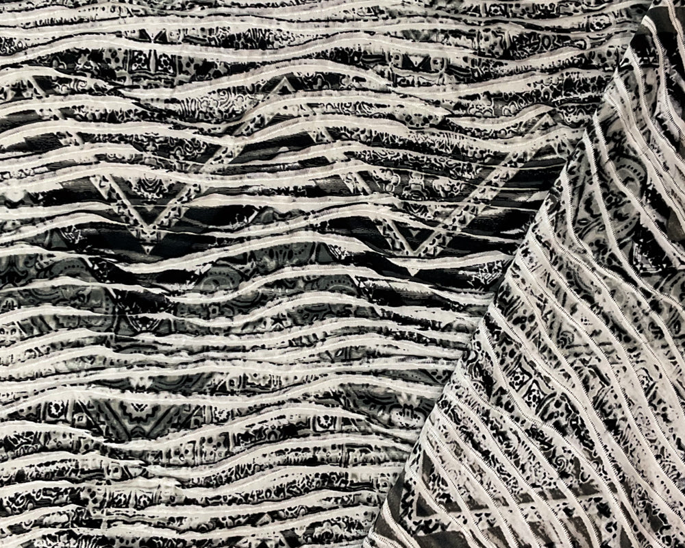 Black-White-Multi Poly TieDye Chevron Print Knife Pleat Knit Fabric