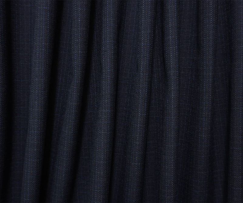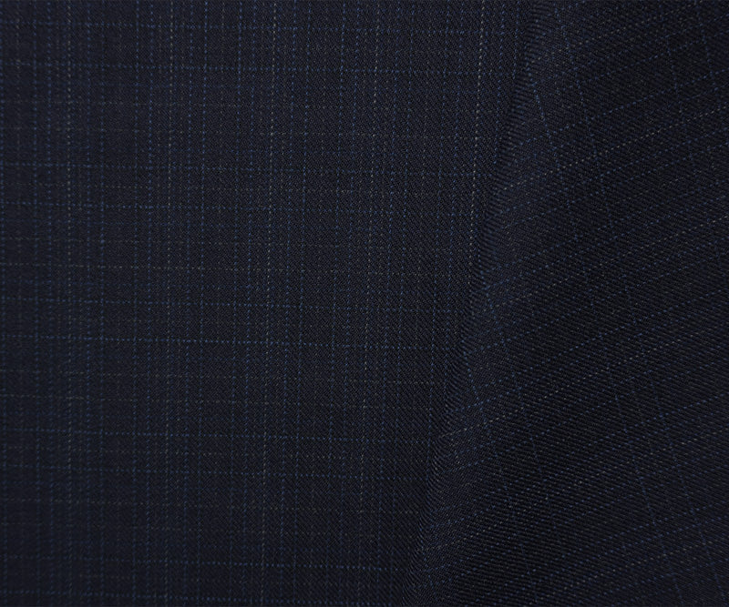 Blue-Beige Wool Poly Check Twill Suiting Fabric