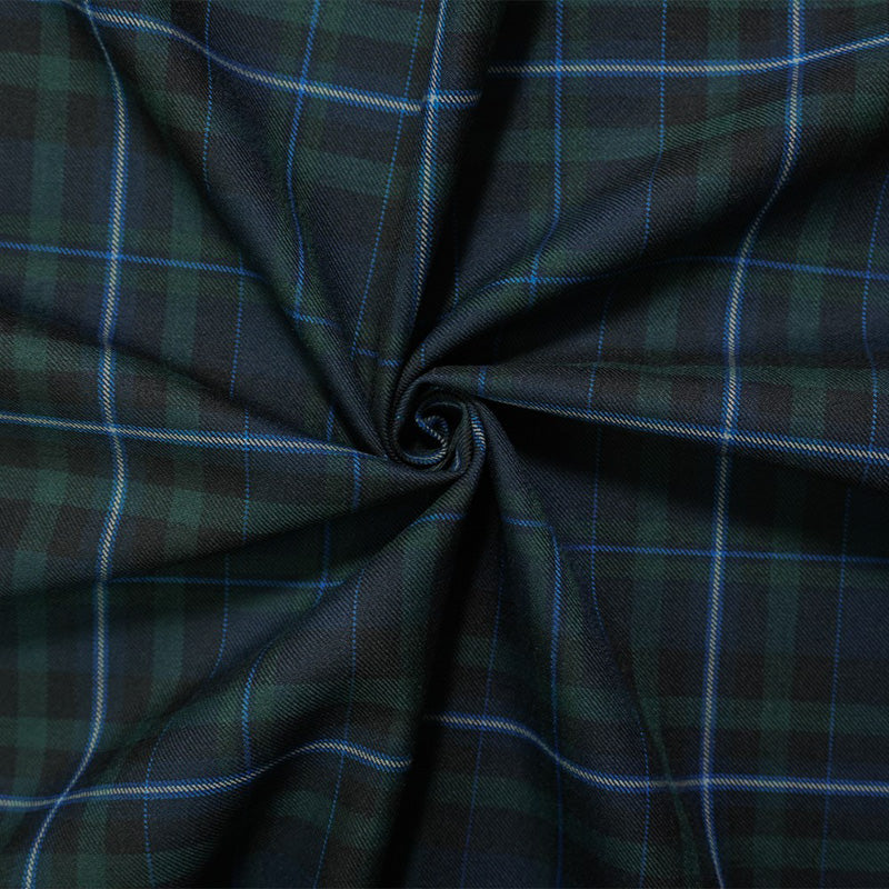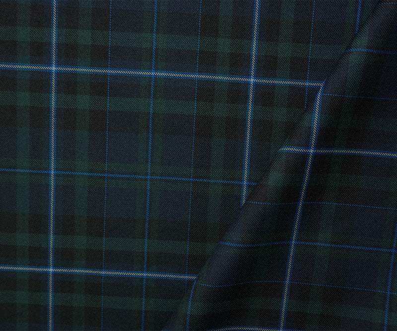 Blue-Multi Wool Poly Plaid Japanese Twill Woven Suiting Fabric