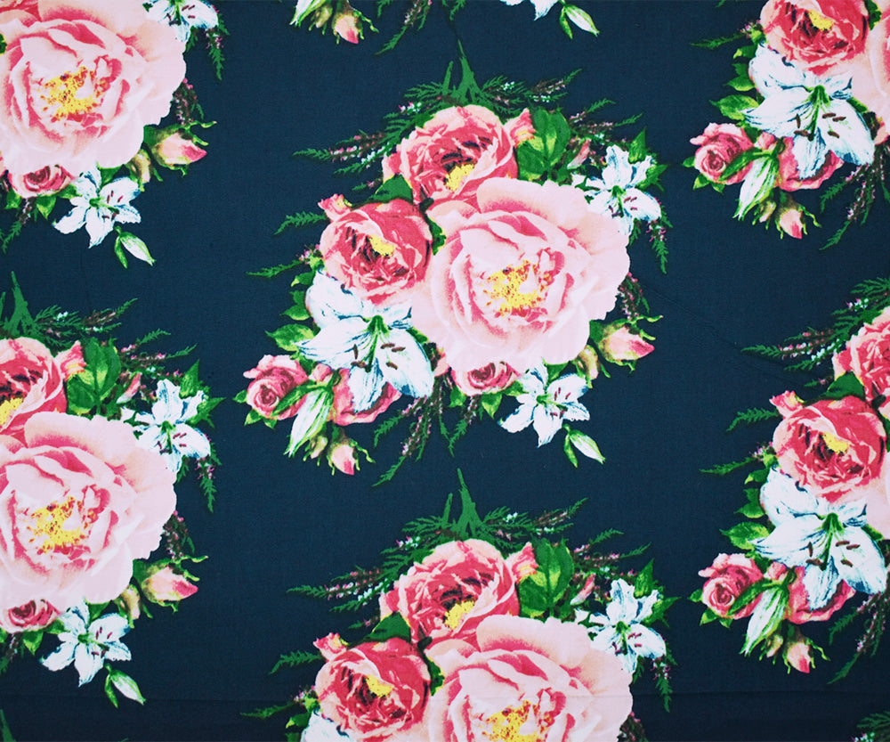 Blue-Pink-Multi Cotton Stretch Spandex Floral Printed Poplin Woven Fabric