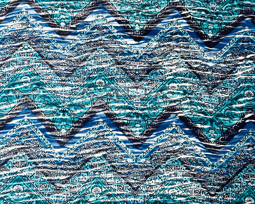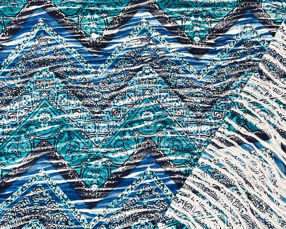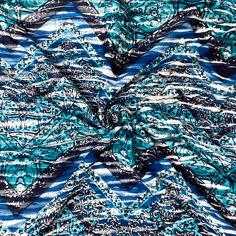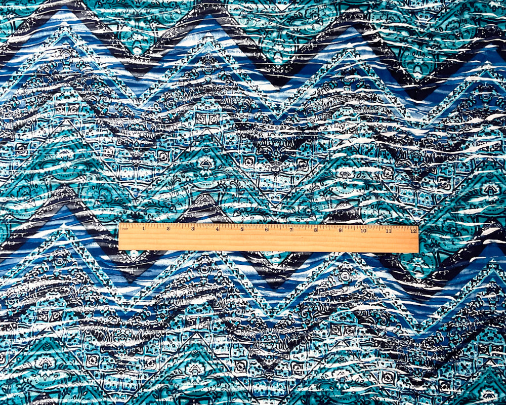 Blue-Turquoise Poly Chevron Baroque Print Knife Pleat Knit Fabric