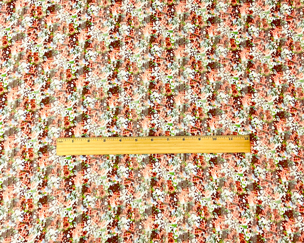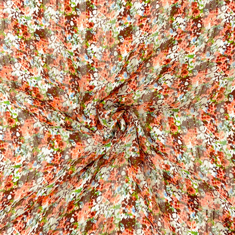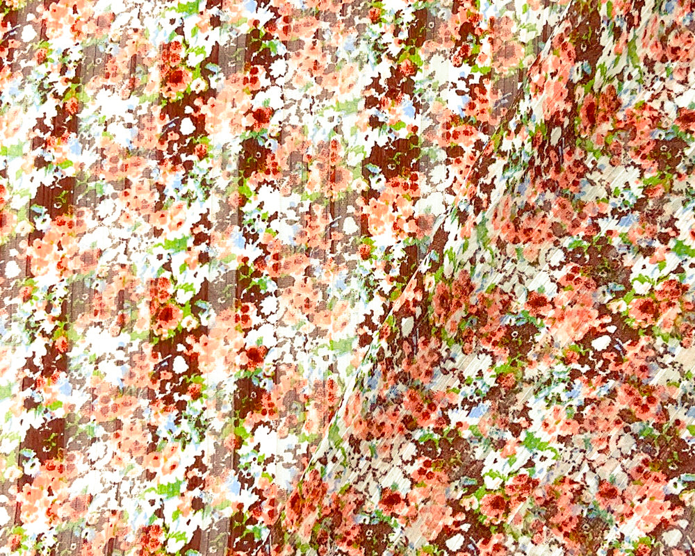 Brown-Multi Poly Floral Printed Satin Stripe Chiffon Woven Fabric